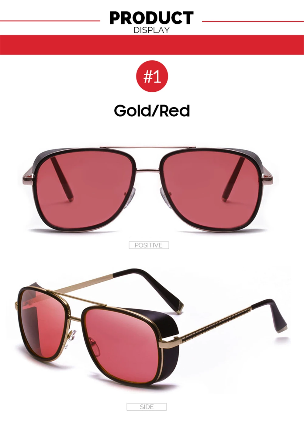 Мужские и женские трендовые солнцезащитные очки colour, готические квадратные очки Tony Stark с защитой UV400, винтажные очки, 2019