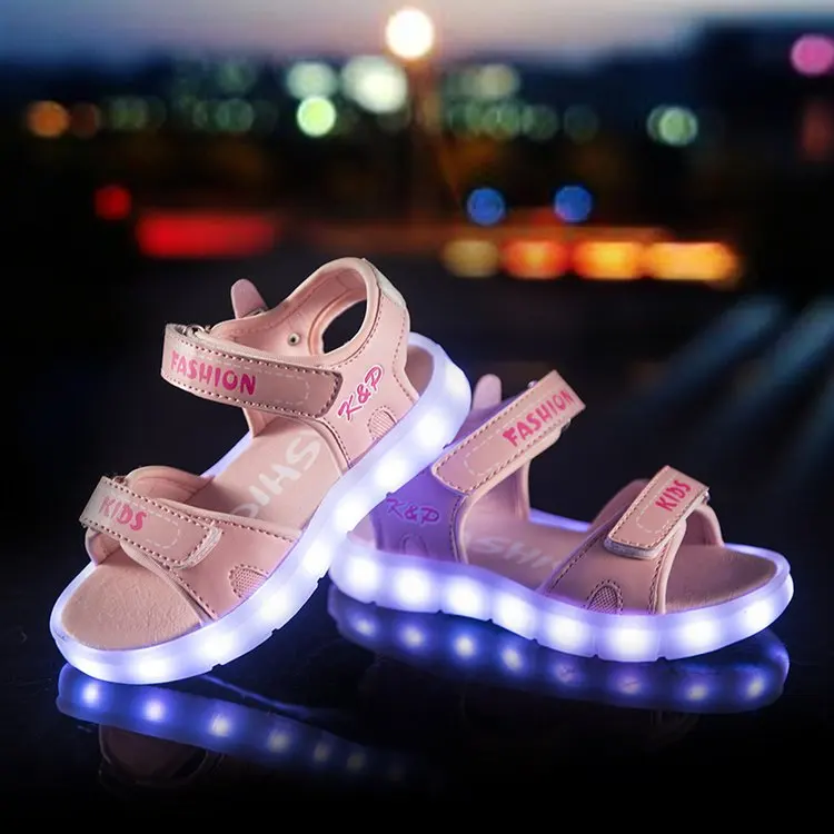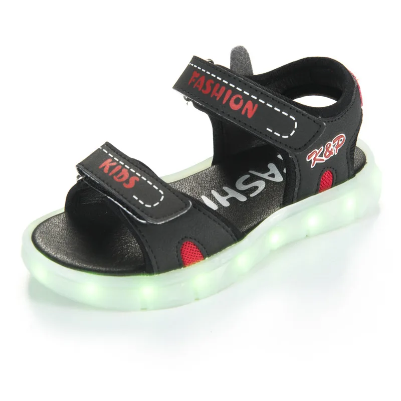 Летние детские сандалии со светодиодной подсветкой, водонепроницаемые сандалии с USB-зарядкой и ярким ремешком для мальчиков