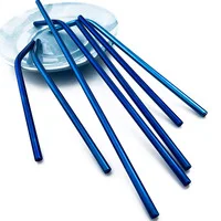 Новые синие 4 шт. металлические соломинки из нержавеющей стали, прямые изогнутые многоразовые трубочки с 2 чистящими щетками, соломинки, вечерние аксессуары