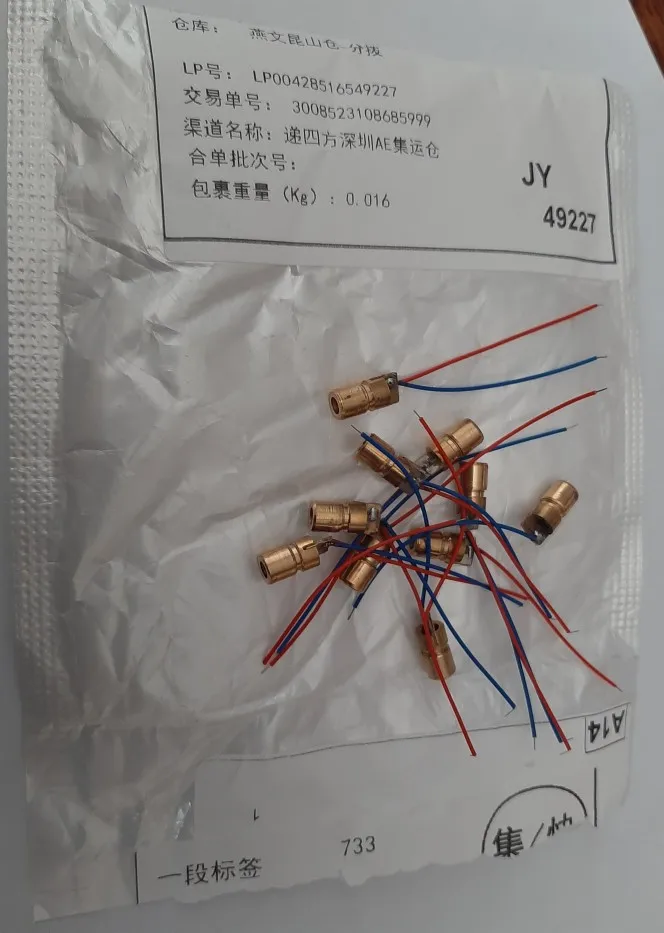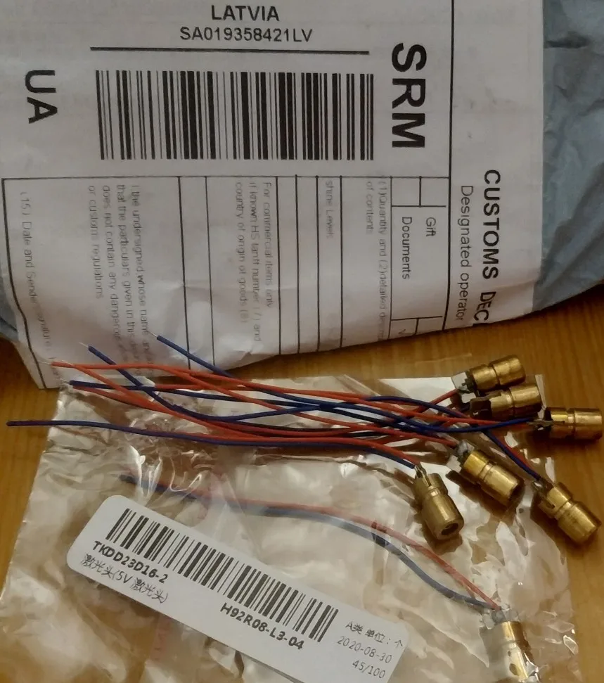 Проблема в том, что я заказал как лазерный диод 3 в 5 шт., так и лазерный диод 5 в 5 шт. Но я получил 10 смешанных лазерных диодов, и, по всей видимости, нет необходимости понять, какие из них 3В и какие из них 5 В