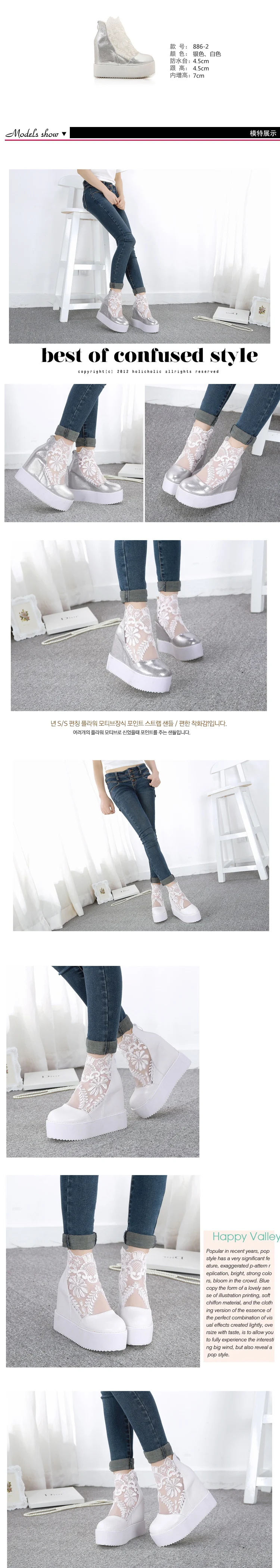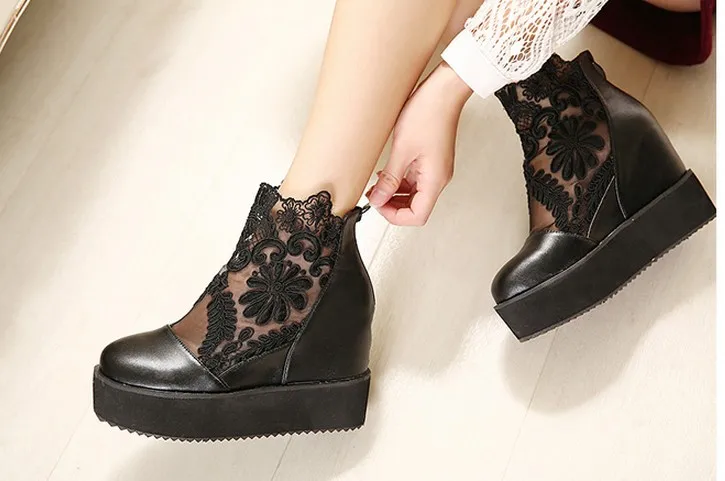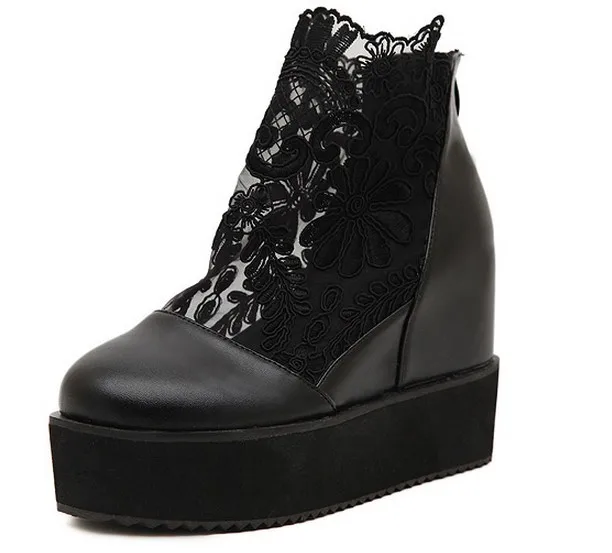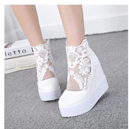 Женские высокие ботинки на танкетке, повседневные дышащие ботинки с кружевной прострочкой и круглым носком, на высоком каблуке, для весны, 2021