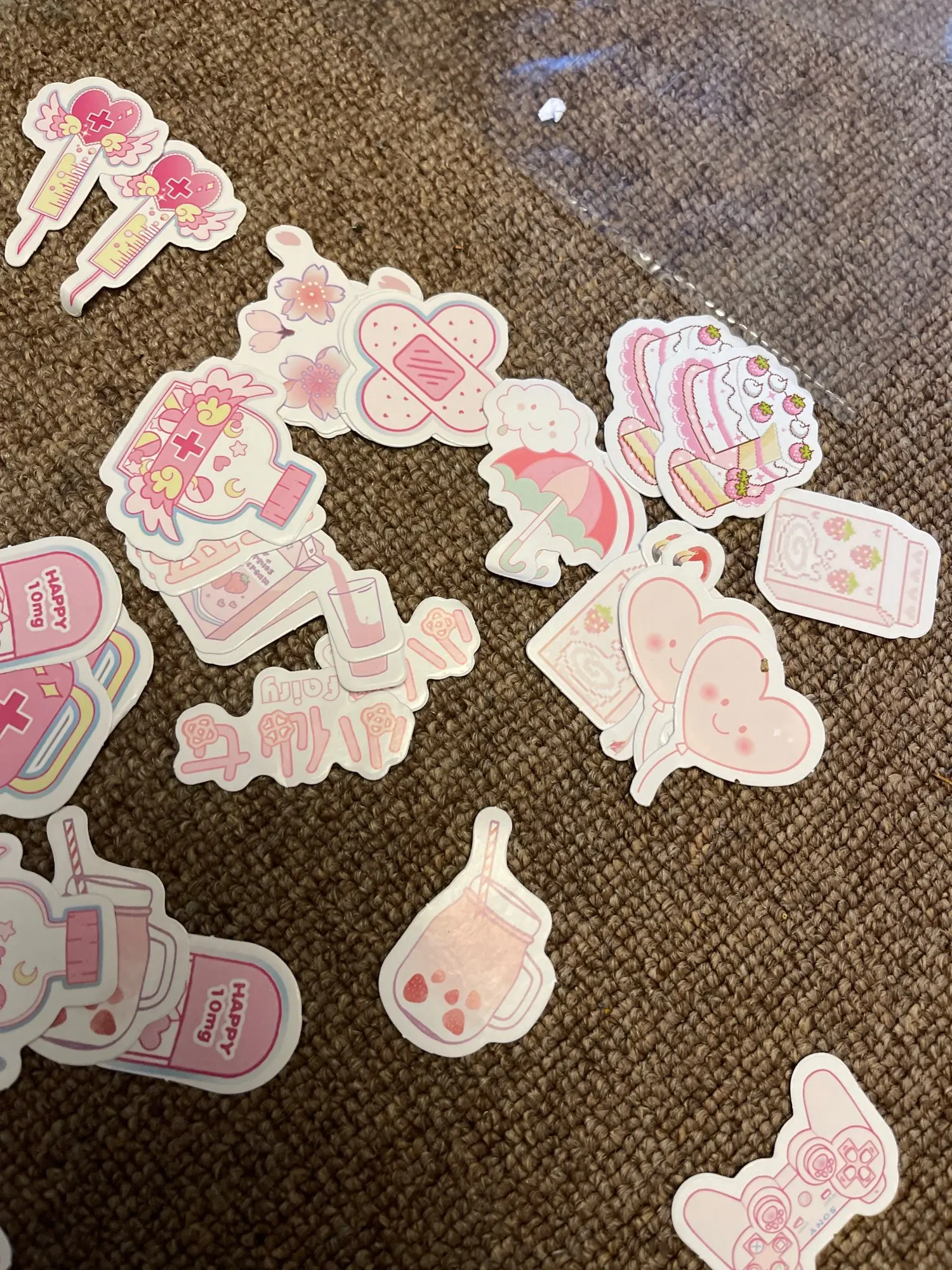 Типа «грубые» темы, такие как подавление, больницы и таблетки, но, честно говоря, они супер милые и очень качественные наклейки