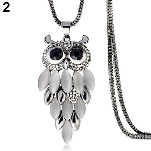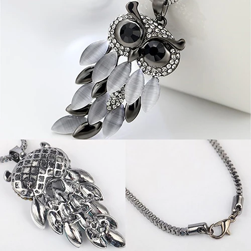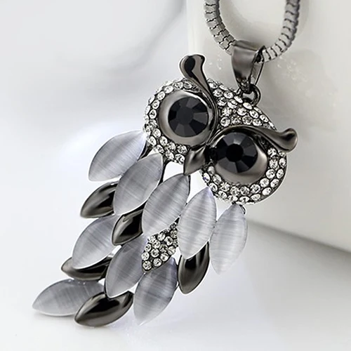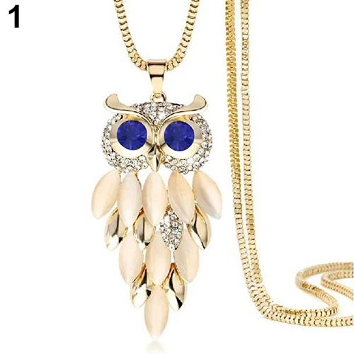 Женская Милая блестящая подвеска в виде совы, стразы, длинный свитер, коробка, цепочка, ожерелье, ювелирные изделия