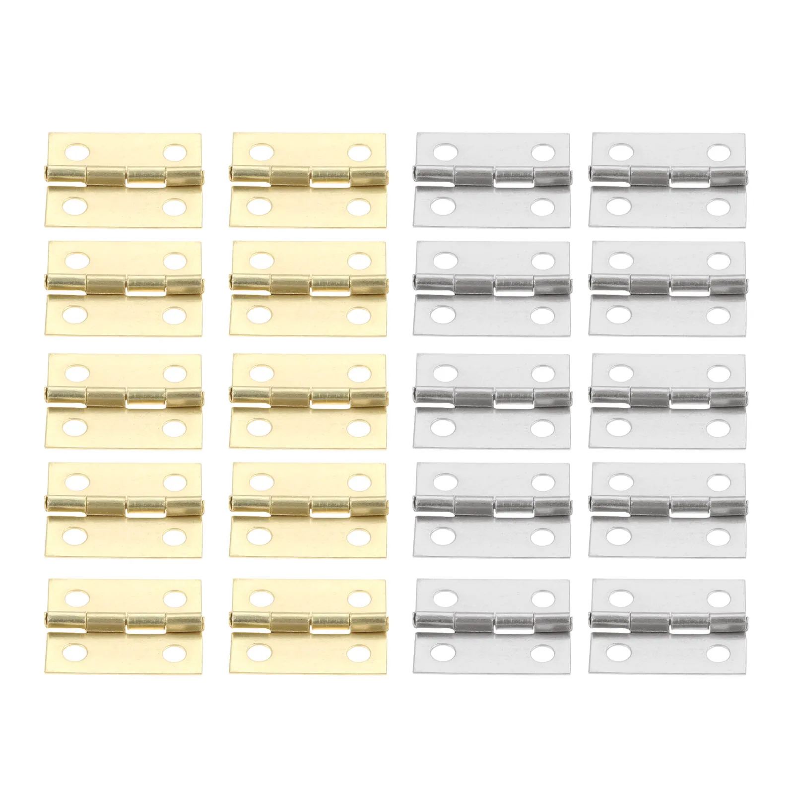 Винтажные Мини-петли для дверей шкафа, 20 шт., 4 отверстия, декоративные деревянные шкатулки, багажные петли, мебельное Украшение 18*16 мм, серебристыйзолотой