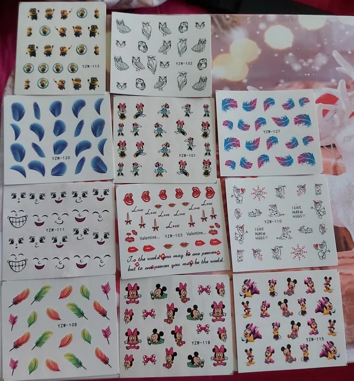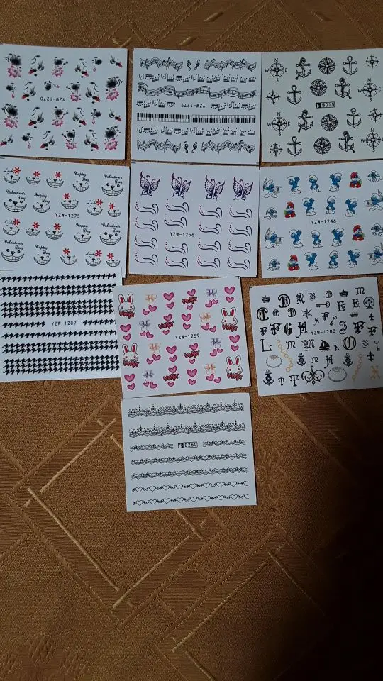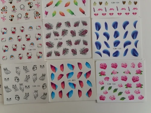 Отличные картинки ,печать просто супер, все чётко, переносится хорошо, отлипает хорошо от основы, плёночка тонкая ,большое количество разных вариантов ,слайдеры не повторяются, супер! всем советую !пришло в течение месяцев полтора)