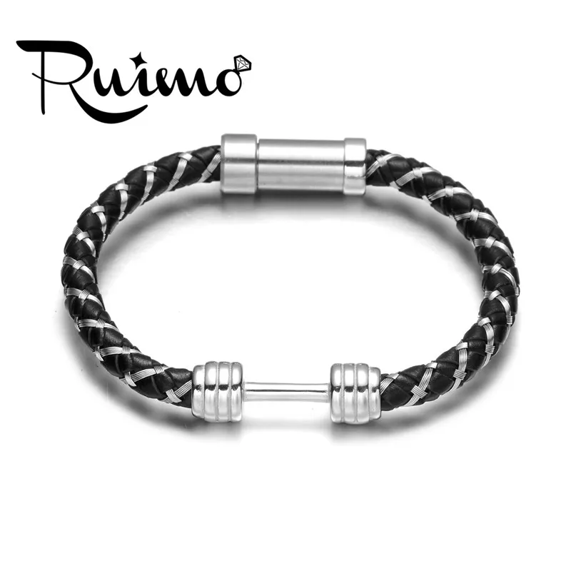 RUIMO браслет с гантелей кожаный спортивный браслет для мужчин 316l нержавеющая сталь манжета браслет трендовые ювелирные изделия