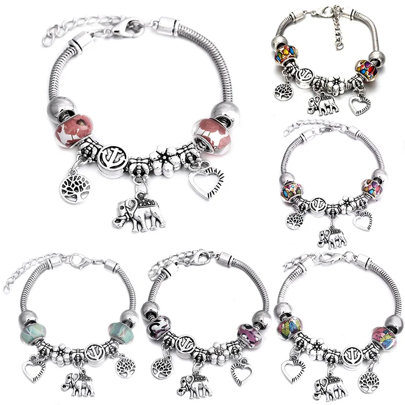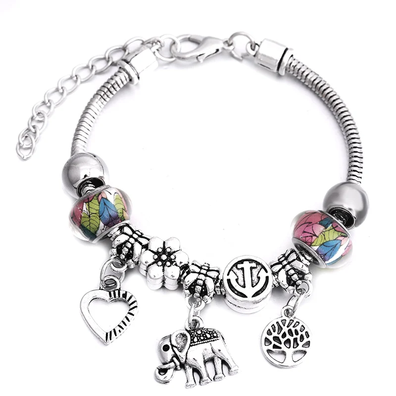 Женский браслет с металлической пряжкой-карабином, летнее украшение из змеиной цепочки с бусинами, 6 цветов, романтический подарок