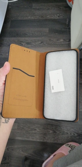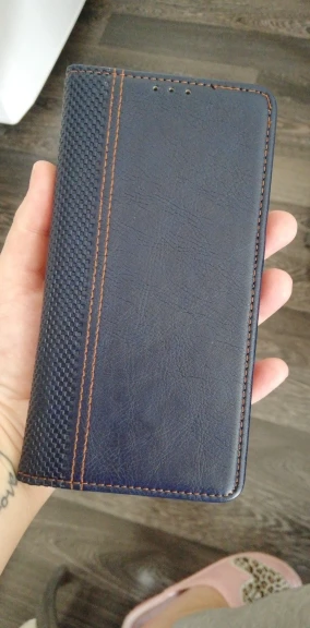 Очень добротный товар и визуально и на ощупь. Когда только вскрыл, был запах клея, но прошёл очень быстро. Один минус: при вставленной в чехол банковской карте прилегает неравномерно неплотно