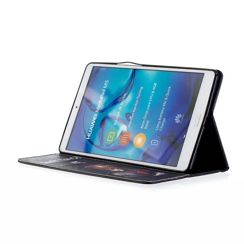 3D красивый чехол-книжка из искусственной кожи с принтом для Huawei MediaPad M5 8,4 дюймов SHT-W09 SHT-AL09 Стенд Крышка для M5 8,4 чехол + Защитная пленка на экран + подставка для ручек