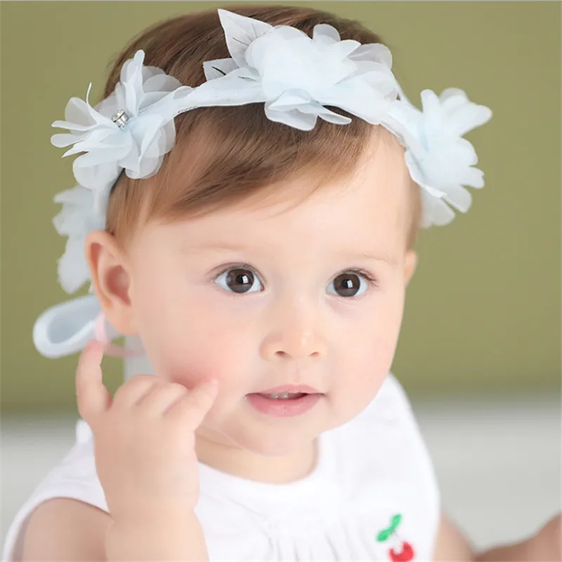 Обруч для волос детский кружевной с цветами и стразами, 8 шт.лот