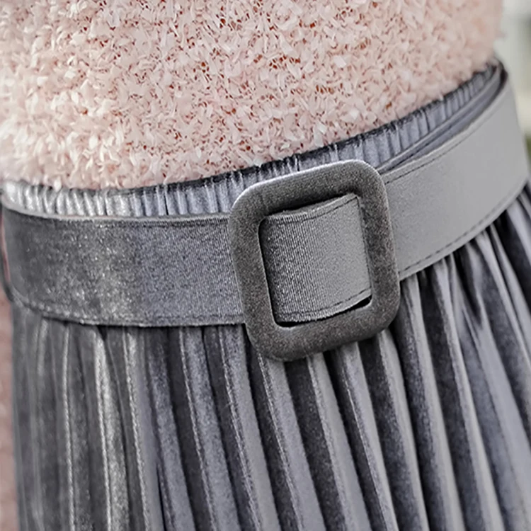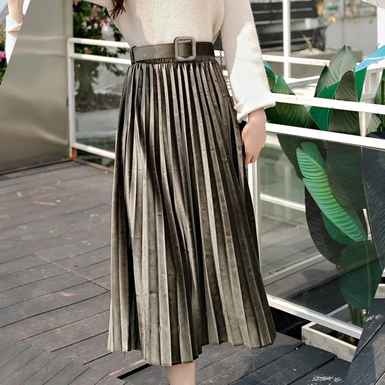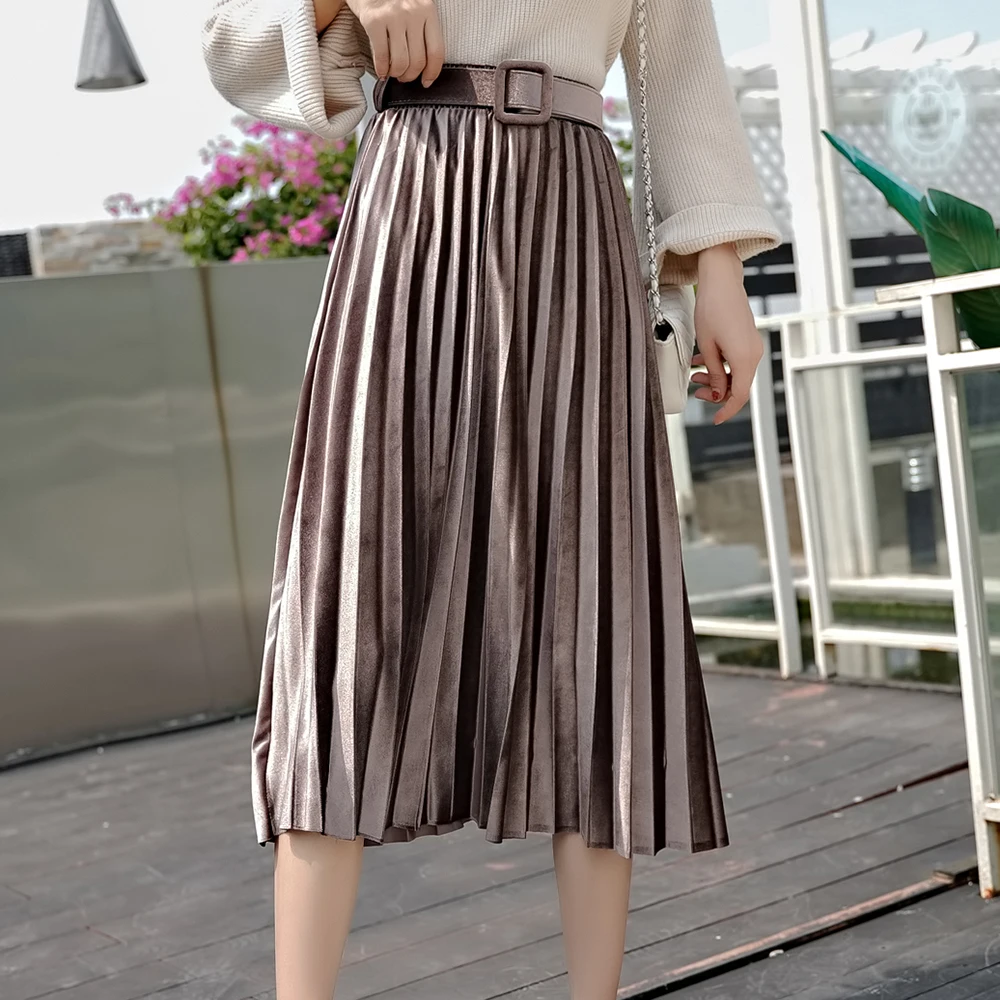 Женские юбки до середины икры, однотонные плиссированные юбки средней длины с высокой эластичной талией, осень 2019