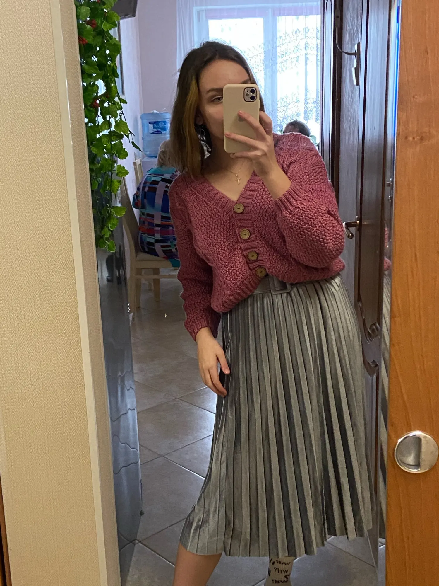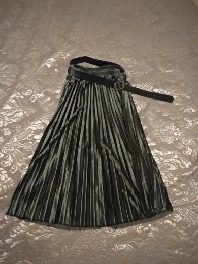 Полностью соответствует описанию. Мой размер 42 рос., в самый раз. Талия на резинке, плотно прилегает, ремень хорошо закрывает резинку. На рост 162 см до середины икры. Ткань приятная, мягкая. Очень довольна.
