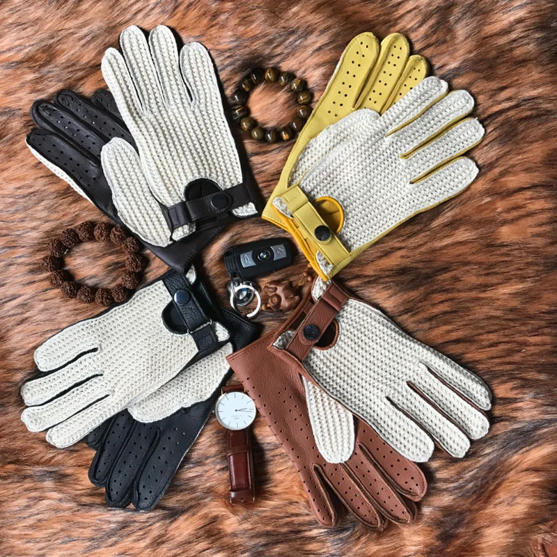 Перчатки мужские из козьей кожи, вязаные, без подкладки