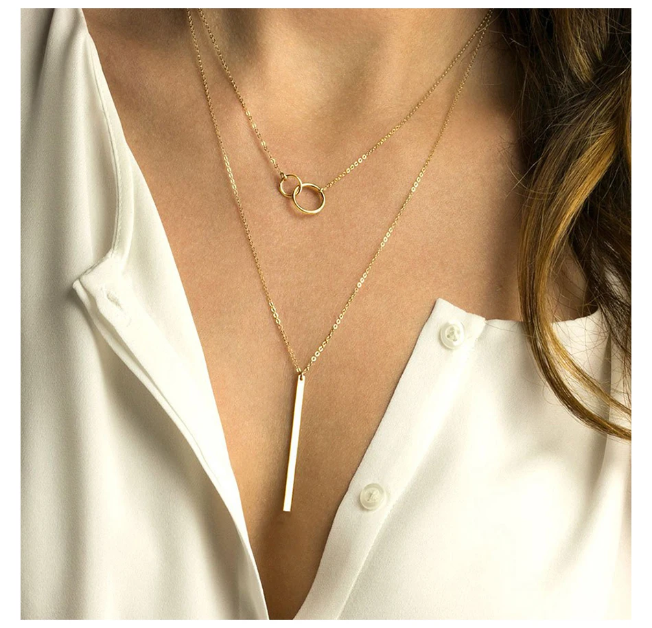E-Manco простое Двухслойное ожерелье для женщин шикарное ожерелье из нержавеющей стали для женщин изысканное колье