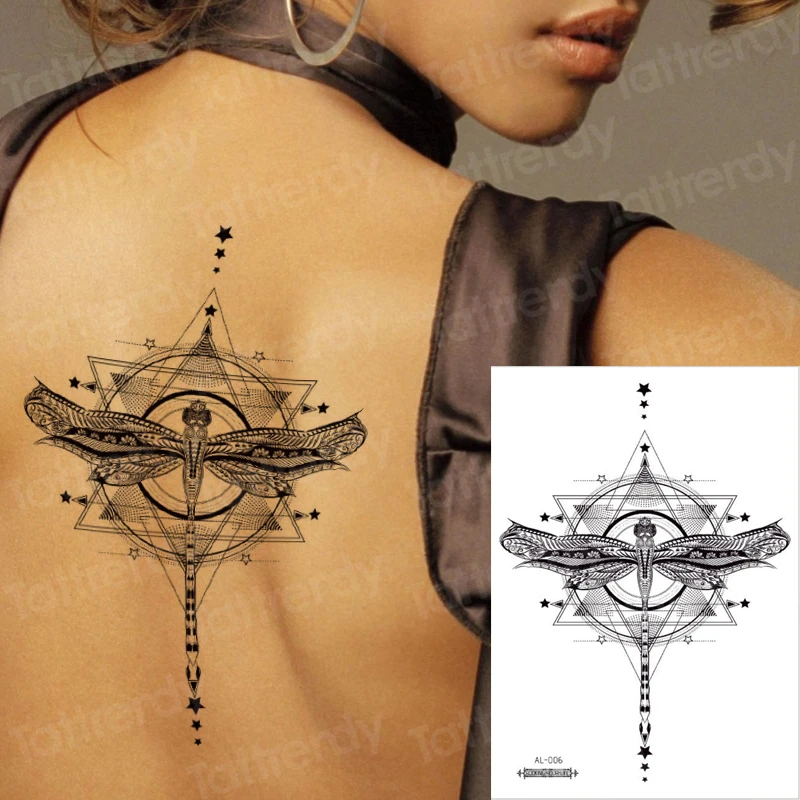 Водонепроницаемая Временная наклейка, Геометрическая стрекоза, татуировка на грудь, черный треугольник, тату на руку, поддельные татуировки, цепи, Sternal patch