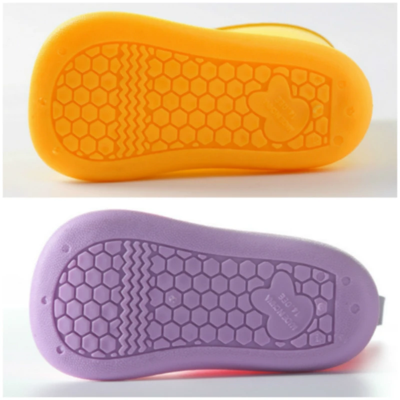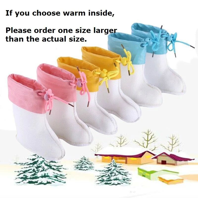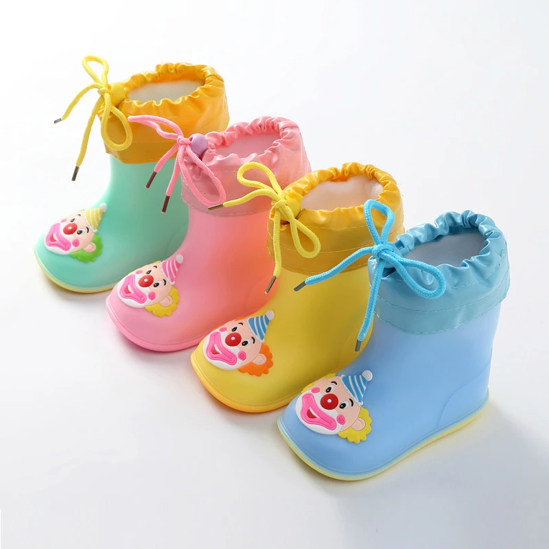 Непромокаемые ботинки для маленьких девочек, водонепроницаемая обувь с теплой внутренней подкладкой для детей, детская обувь из ПВХ и резины, мультяшная водяная обувь для маленьких мальчиков