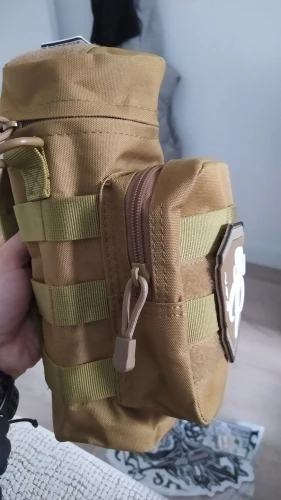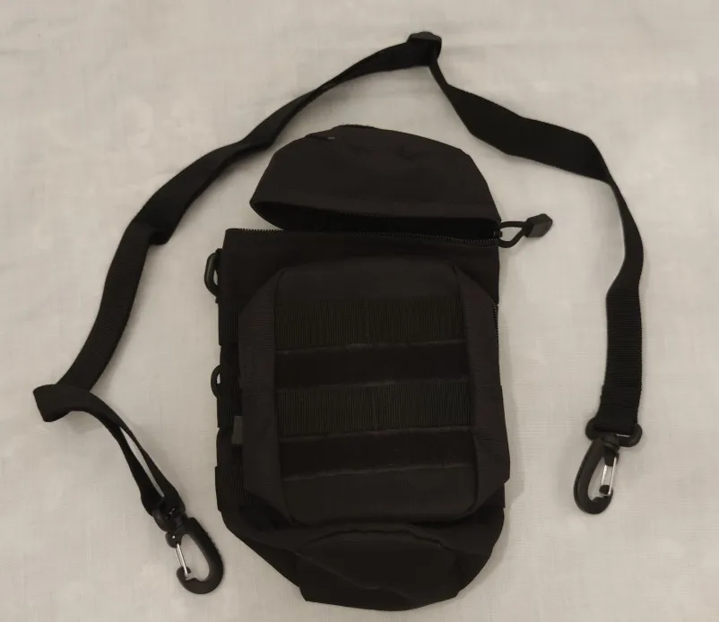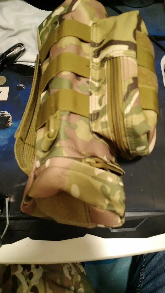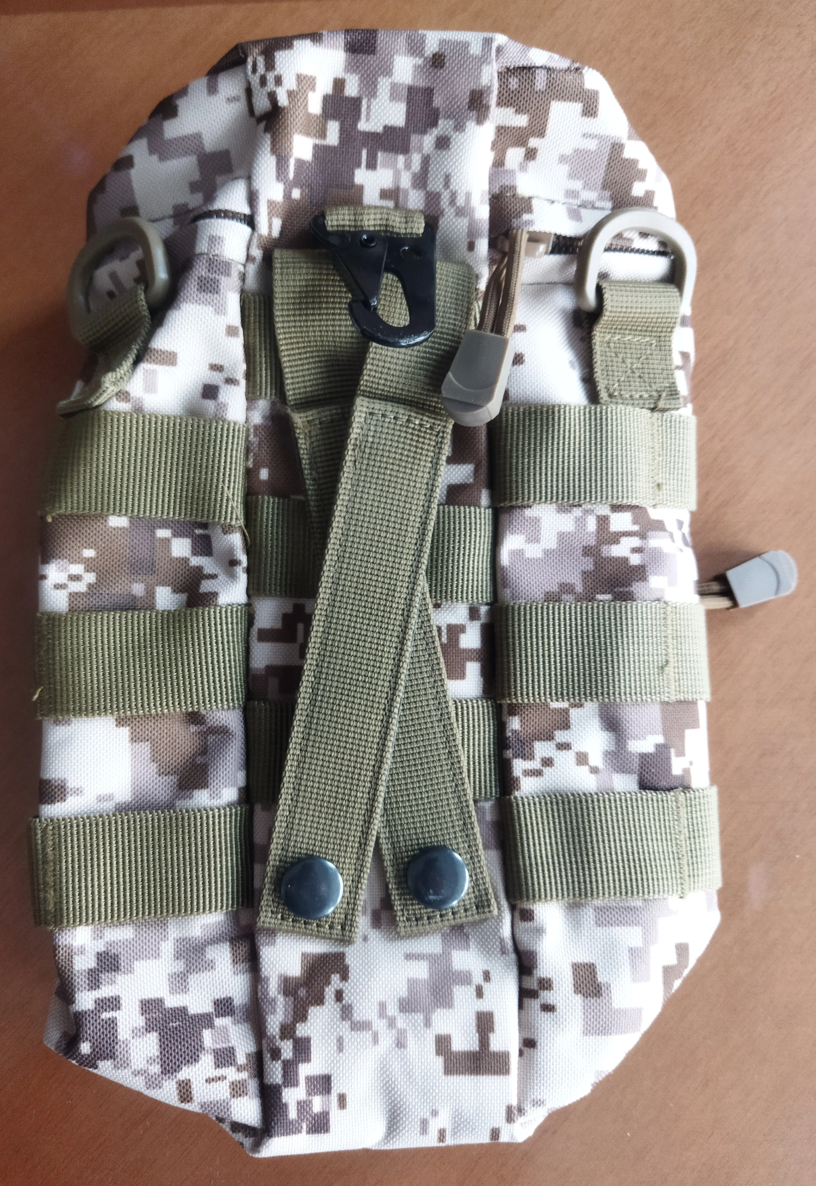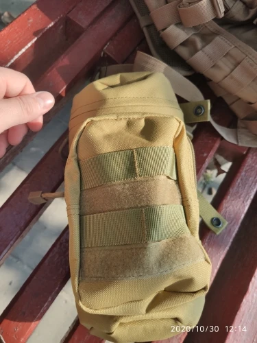 Очень быстрая доставка. До Рязани за 15 дней. Как сумка через плечо или на пояс вполне неплохо, но как дополнительный обвес для рюкзака, то оставляет желать лучшего. Помещаются широкие бутылки до 1л., значительный перевес на сторону подсумка. Есть дополнительный карман для мелочей. На фото бутылка с боржоми 1.25л., как видите клапан уже не закрыть. В целом товар качественный.