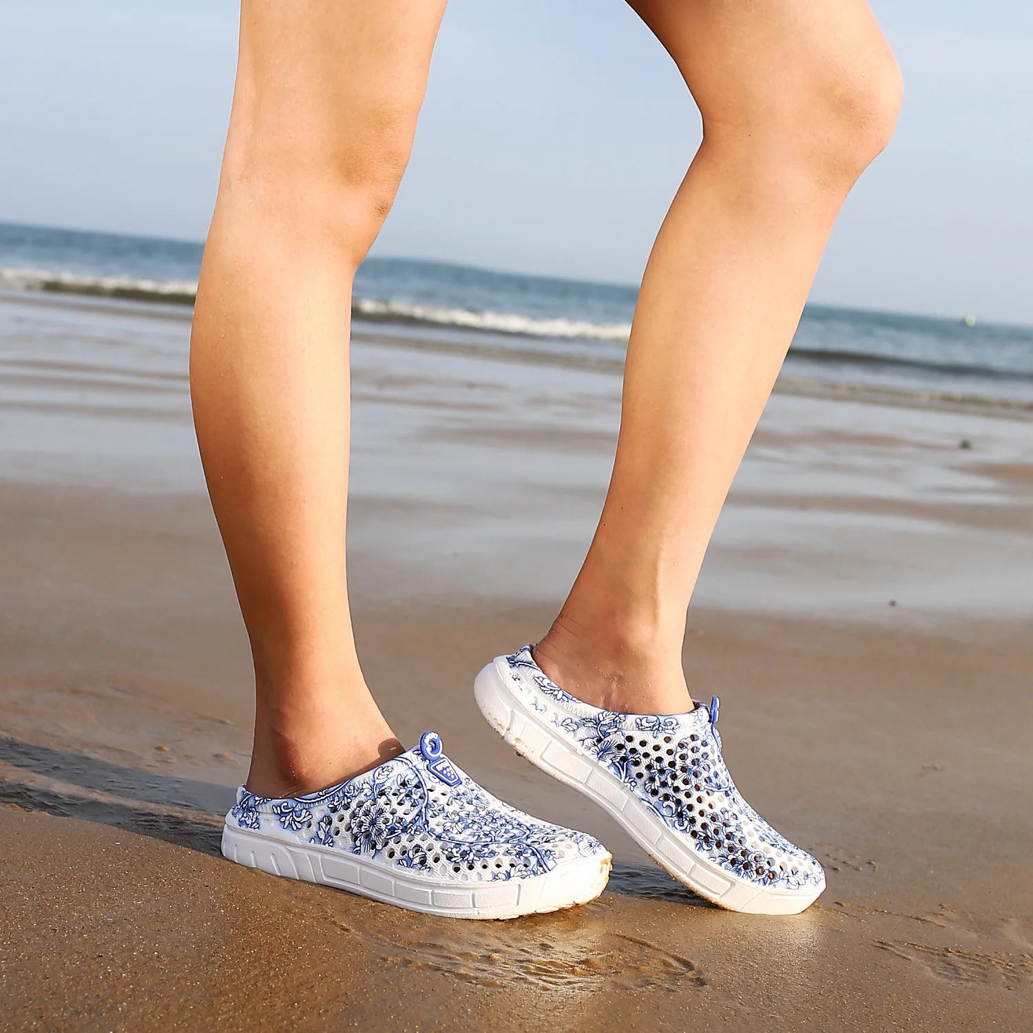 Сланцы женские сетчатые, дышащие шлепанцы для дома, пляжная обувь, полые тапочки, европейские размеры 42, лето