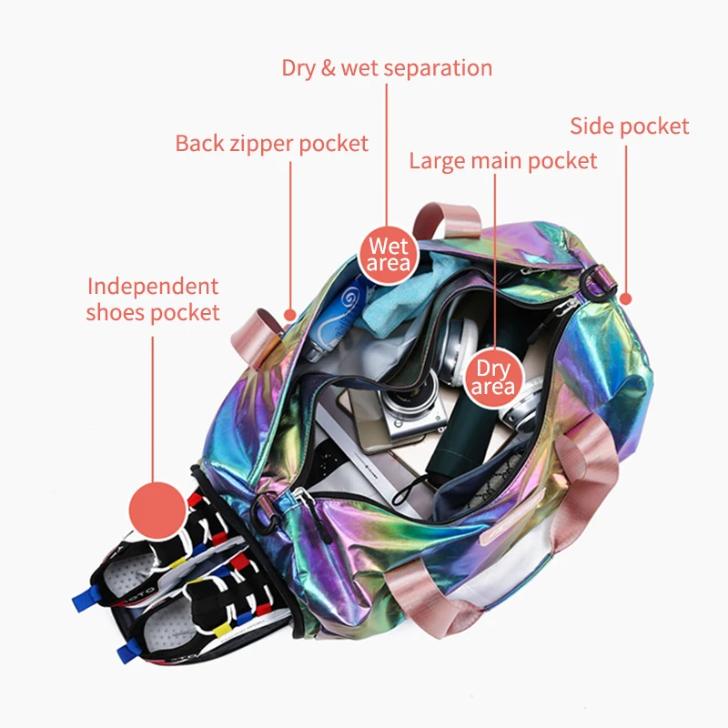 Лазерные красочные дорожные сумки для фитнеса, женская сумка для спортзала, женская сумка для переноски багажа, легкая сумка-тоут, водонепроницаемая сумка для тренировок, XA767WB