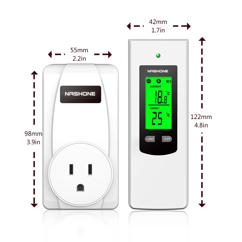 Доставка быстрая. Купил для управления центробежкой газового котла . Может работать и на охлаждение. Настраивается очень просто. На дисплее пульта значения настроенной и текущей температуры. Розетка включается, когда температура в помещении падает на один градус ниже, и выключается, когда поднимается на один градус выше настроенной. Работает отлично .Покупкой очень доволен.