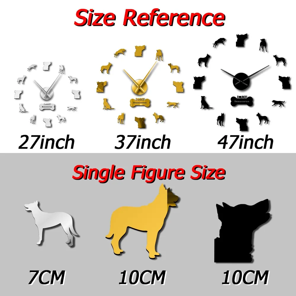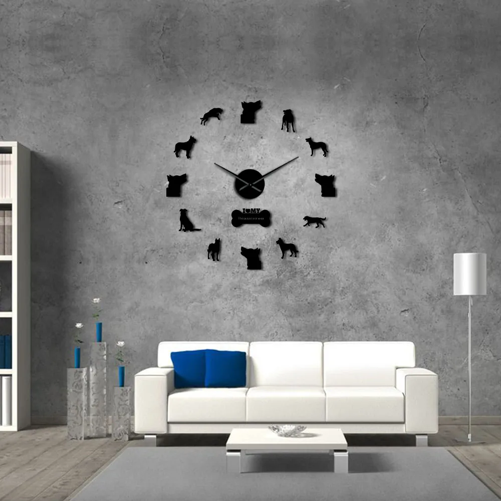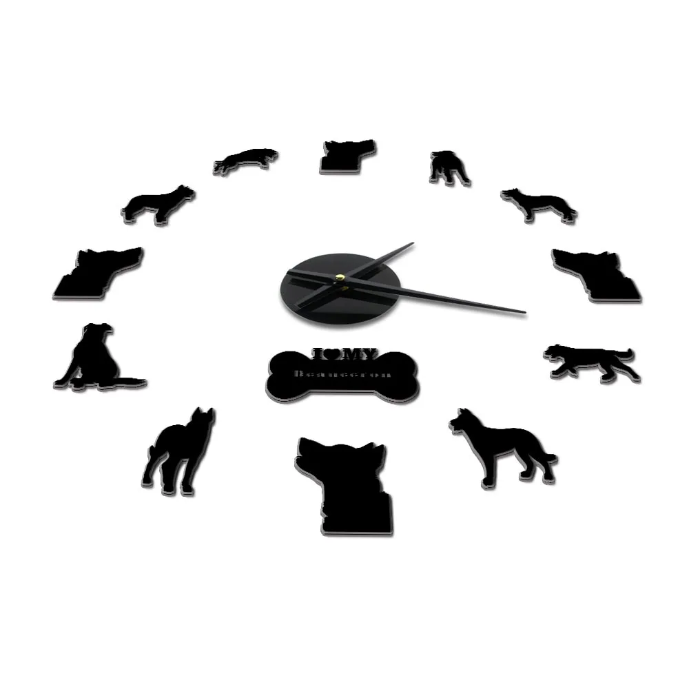Настенные наклейки с изображением собаки, большие часы для домашнего декора, игрушечная собака щенка, животного, 3D акриловые настенные часы сделай сам, Тихая развертка