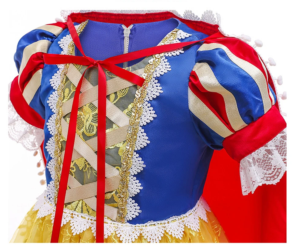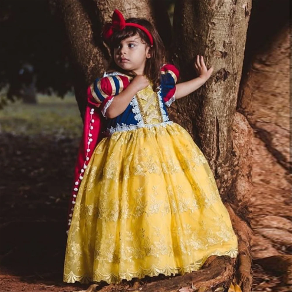 Костюм Белоснежки на Хэллоуин, платье принцессы для девочек, детские кружевные вечерние платья с пышными рукавами, праздничные платья-пачки на Рождество и день рождения