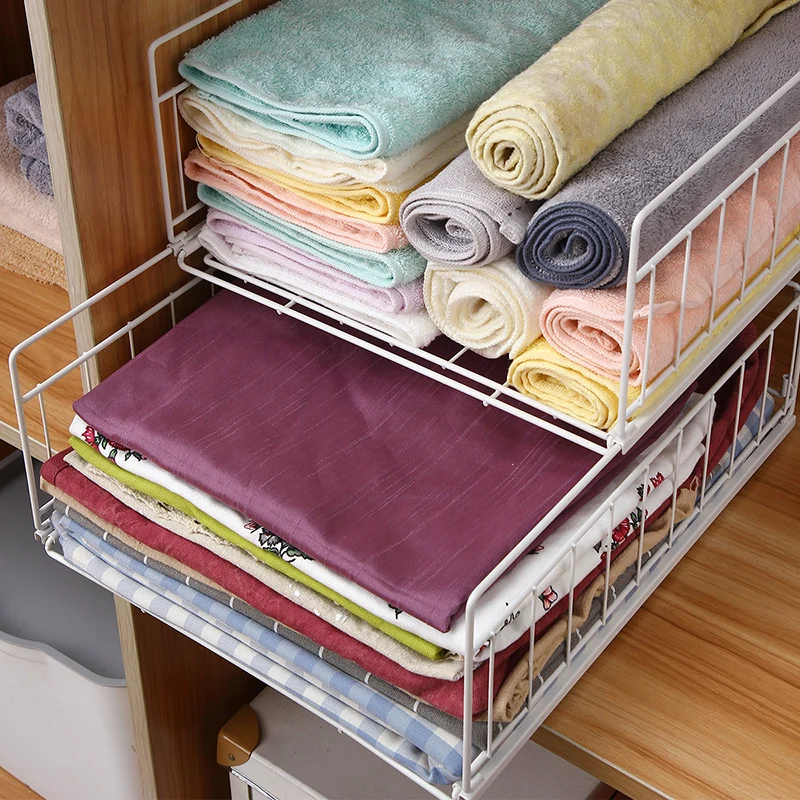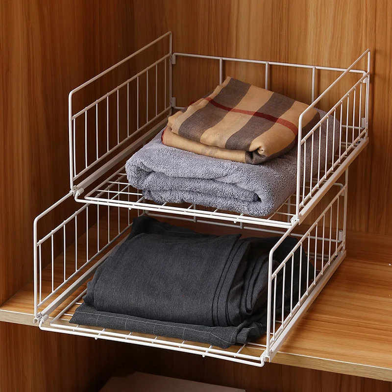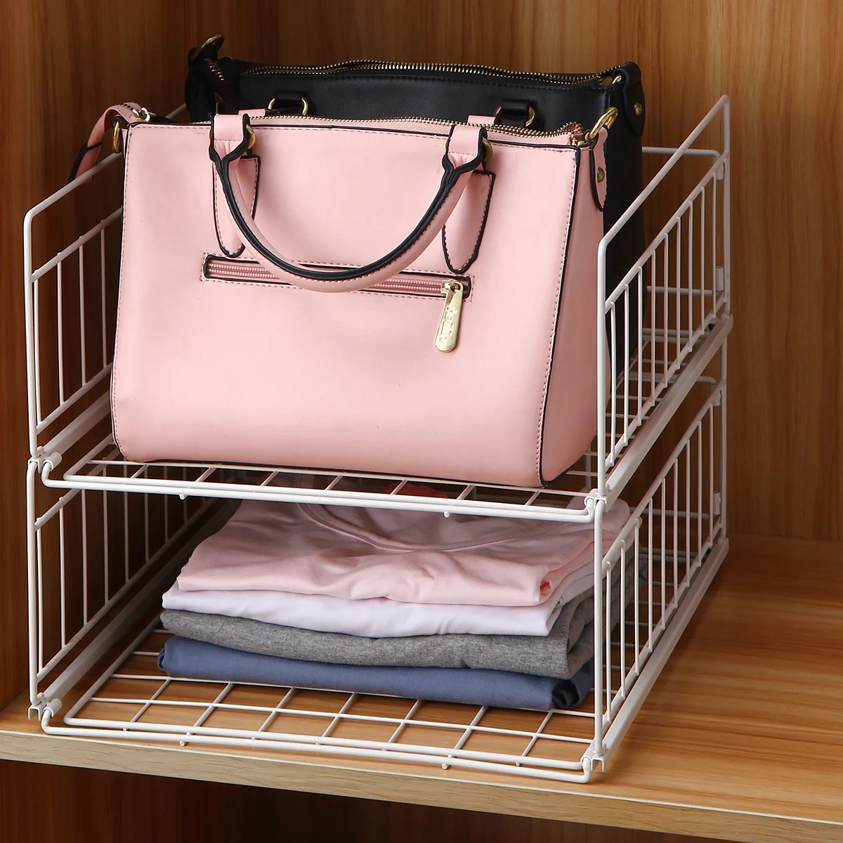ORZ одежда Штабелируемый Органайзер раздвижная проволочная корзина 2 шт разделитель для шкафа шкаф стеллаж для хранения одежды