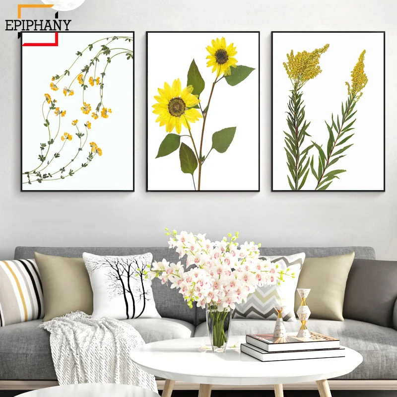 Желтая Цветочная печать, ботаническая Картина на холсте, весенний домашний декор, Современная фермерская стена художественные плакаты и принты для гостиной