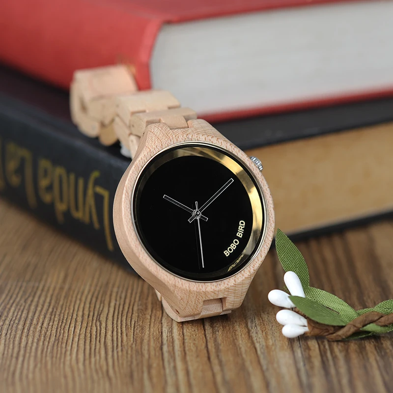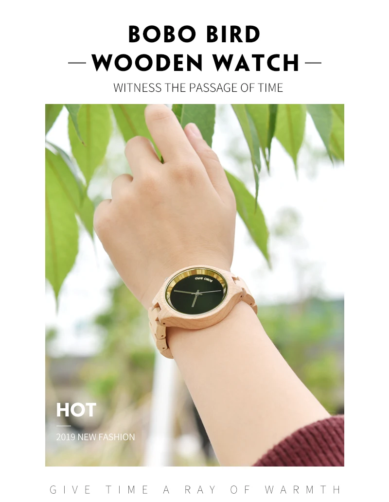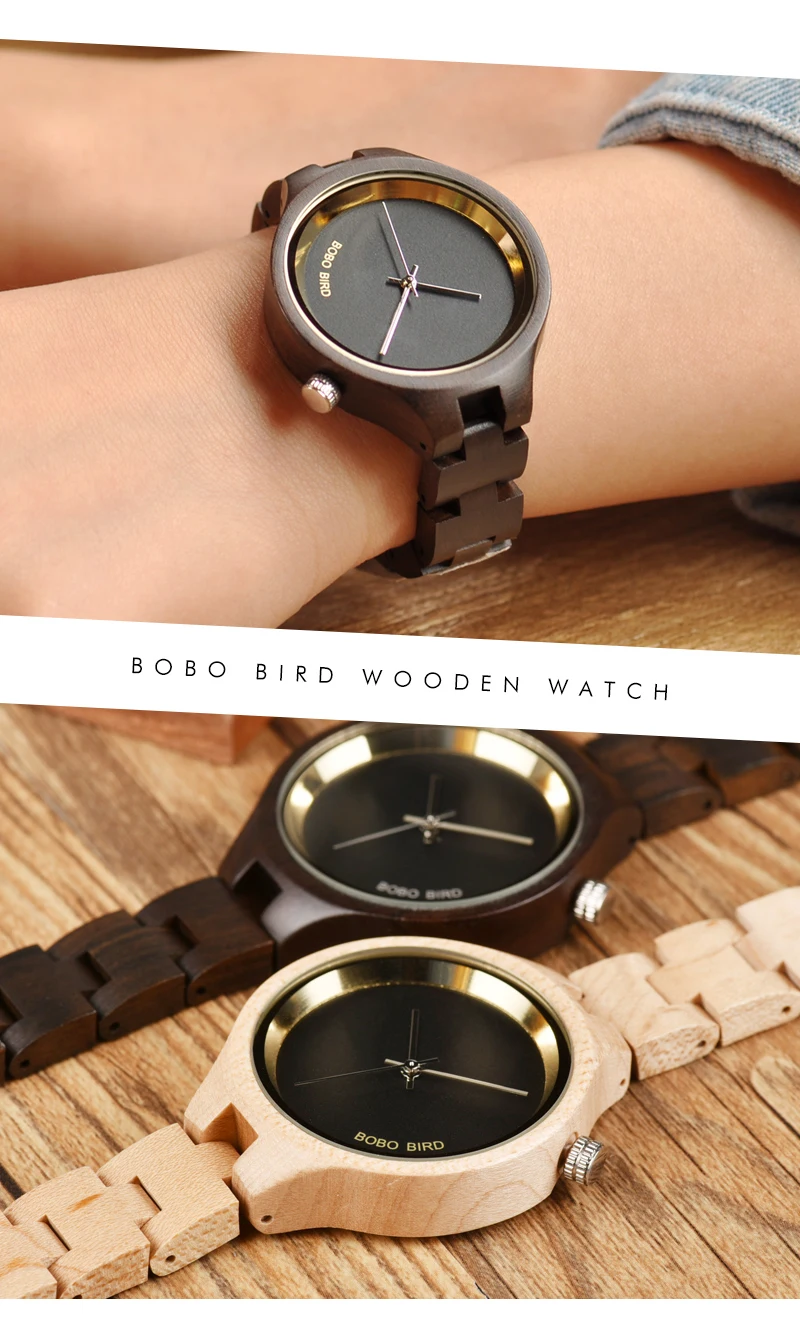 Часы женские кварцевые с простым циферблатом, элегантные модные с деревянным браслетом, с деревянной подарочной коробкой, BOBO BIRD