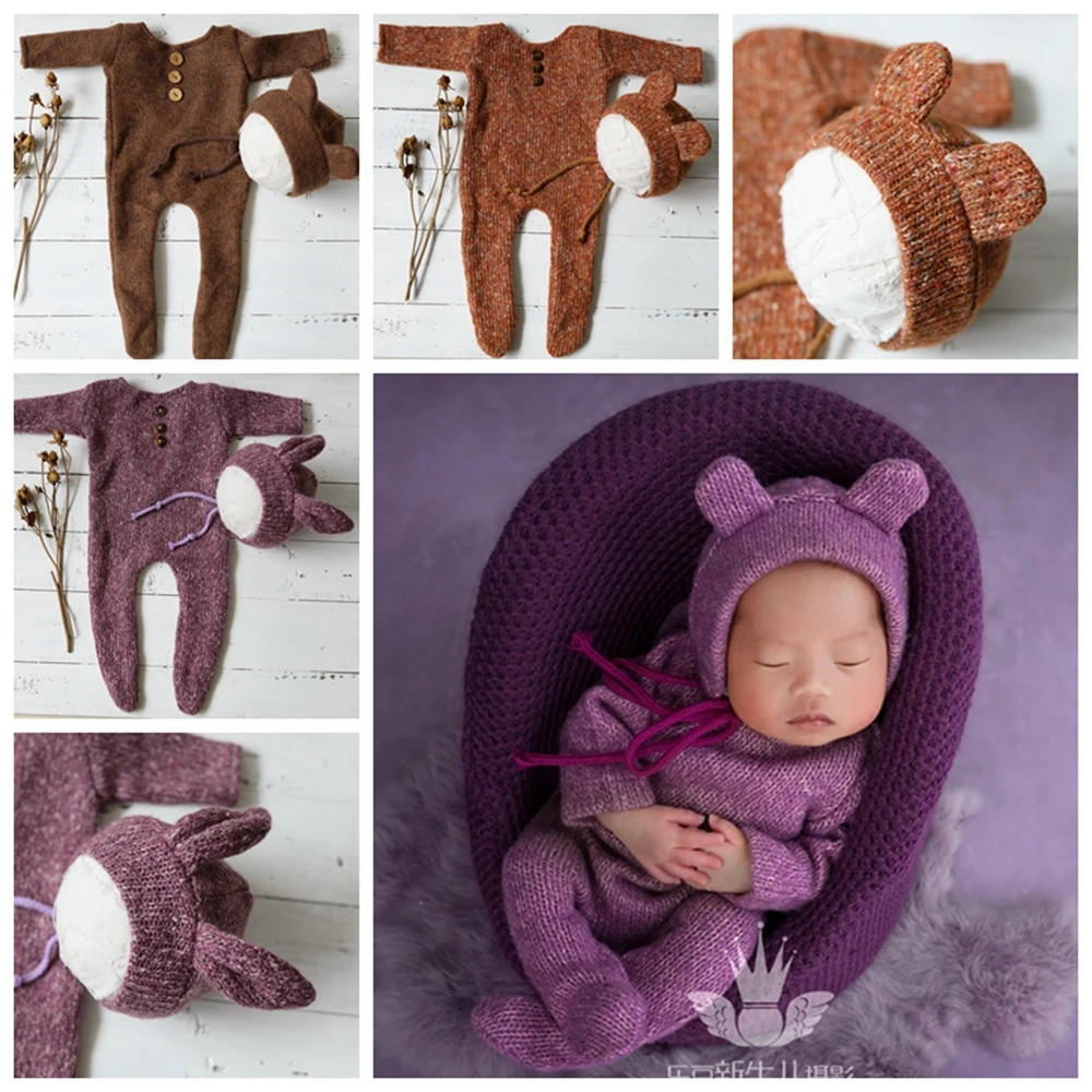 Детские вязаные подштанники для девочек, одежда для новорожденных Подставки для фотографий комбинезон и шапка с заячьими ушами-комбинезон с длинными рукавами для мальчиков Одежда для девочек для фотосессии студия