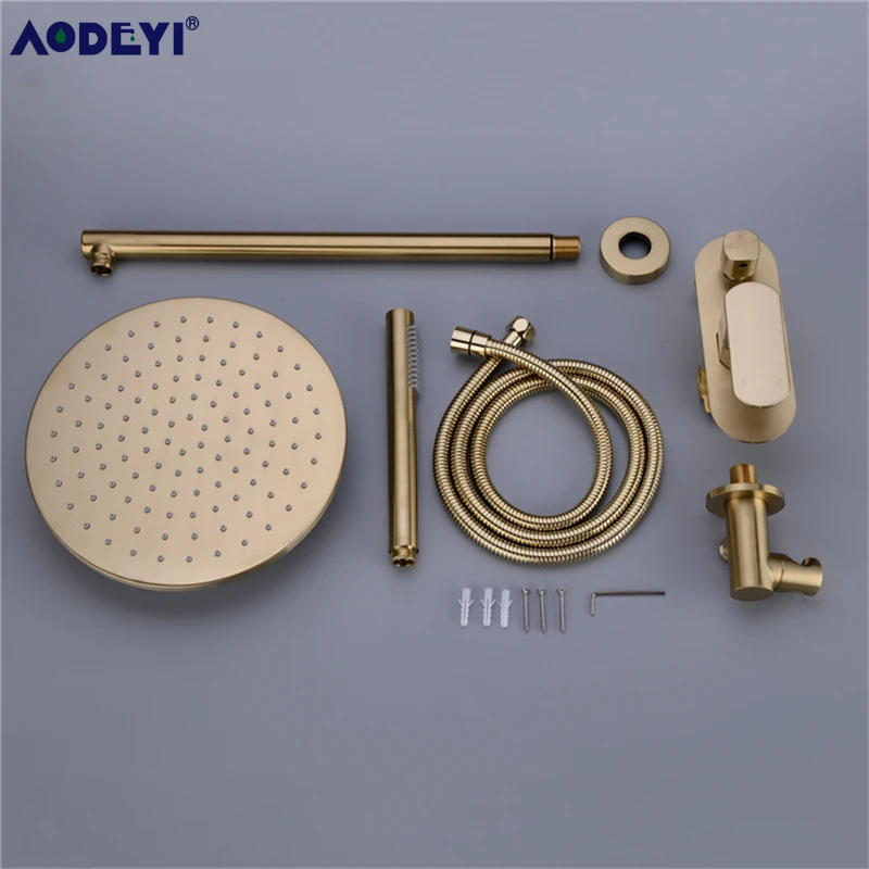 Набор для душа из твердой латуни, насадка для душа Rianfall, система смесителей для душа, настенный смеситель для душа, наборы воды, матовое золото