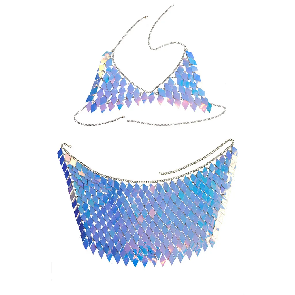 Boho Sequins, бюстгальтер-цепочка для тела, летняя пляжная синяя цепочка бикини, модная Очаровательная цепочка, аксессуары для тела, ювелирные изделия