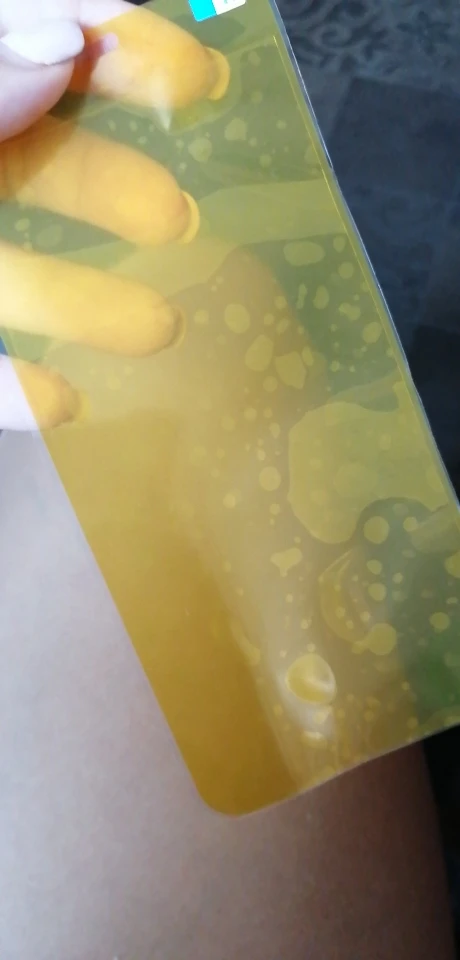 لم يلتصق جيدا و صعب الالصاق جاء مغلف جيدا لكن لم استطع الصاقه بشكل جيد خفيف الصمغ و حدث عليه خدوش و فقاقيع كثيره وخطوط لقد قمت برميه