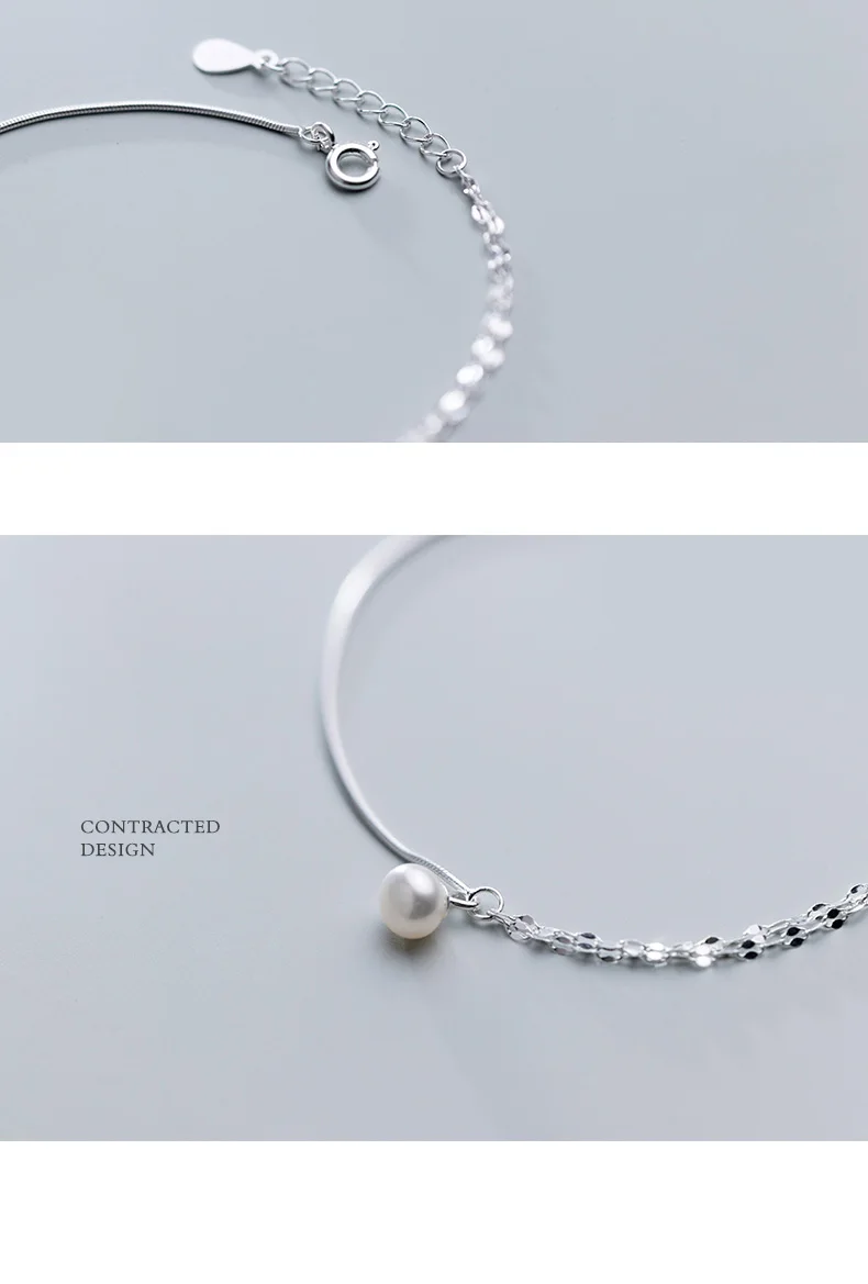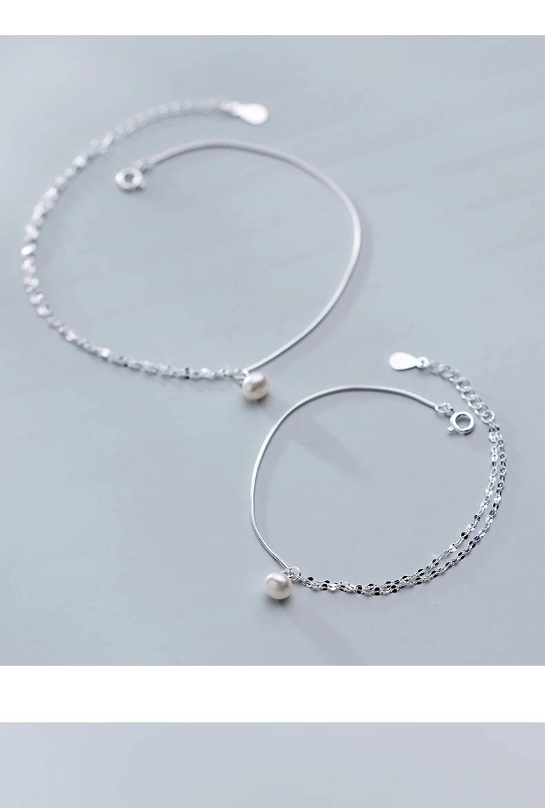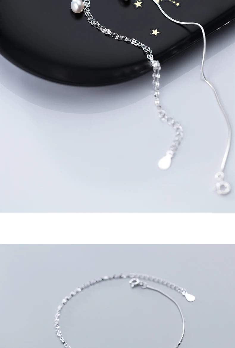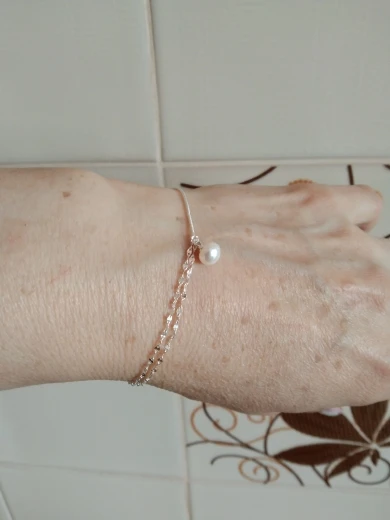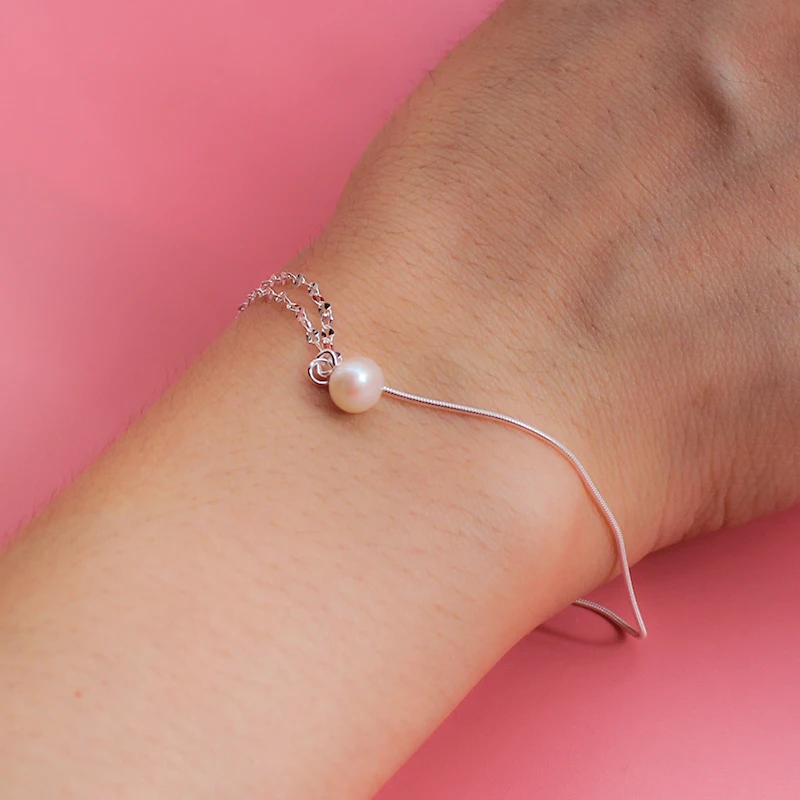 Браслет-цепочка женский из серебра 925 пробы с пресноводным жемчугом