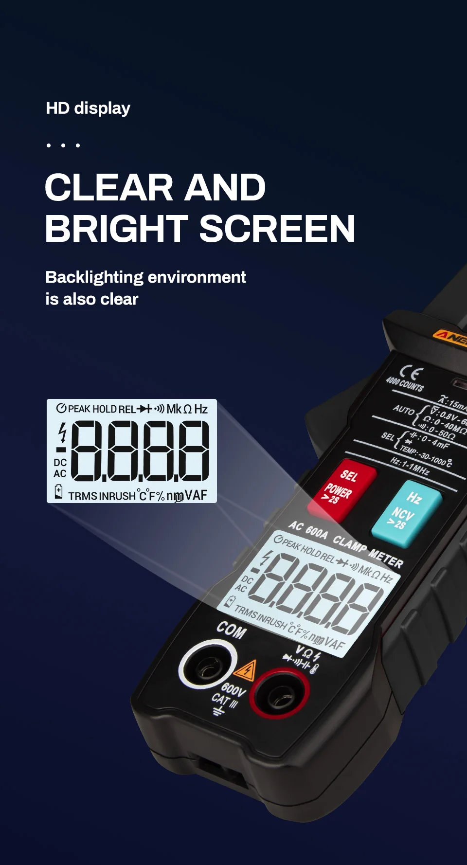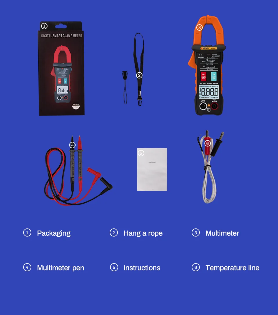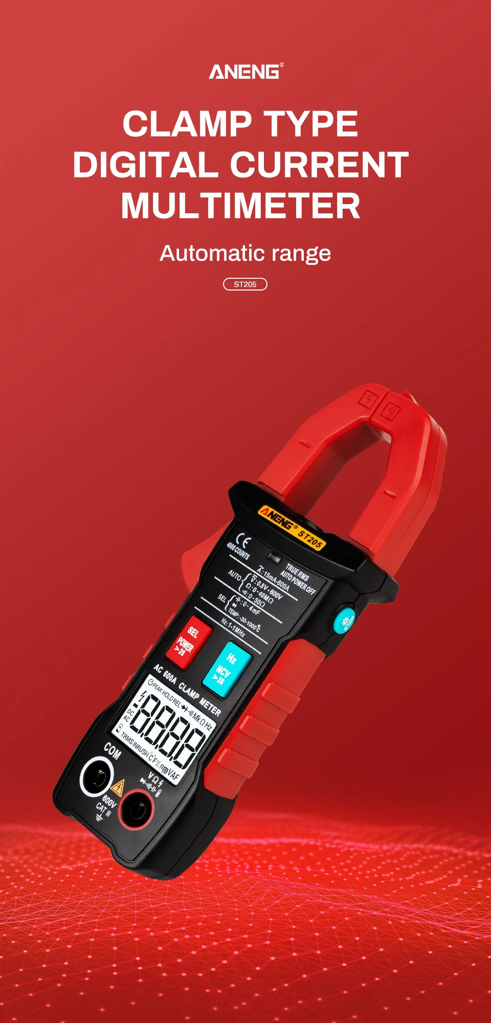 Цифровые клещи ANENG ST205, аналоговый мультиметр, Токоизмерительные клещи постоянногопеременного тока, интеллектуальный автоматический измеритель диапазона с тестером температуры