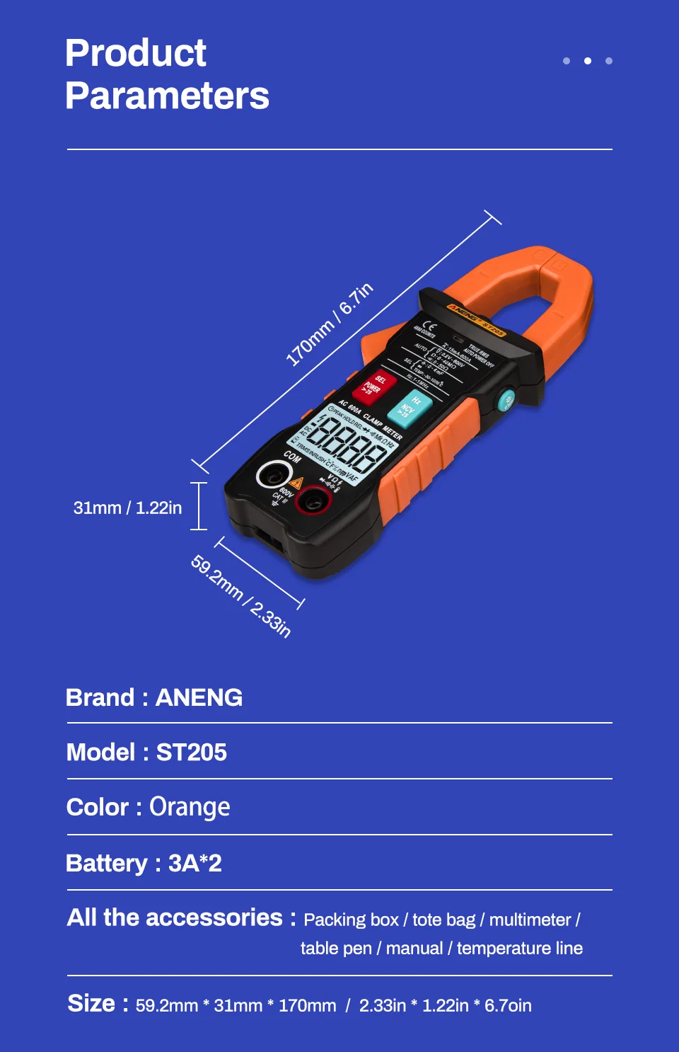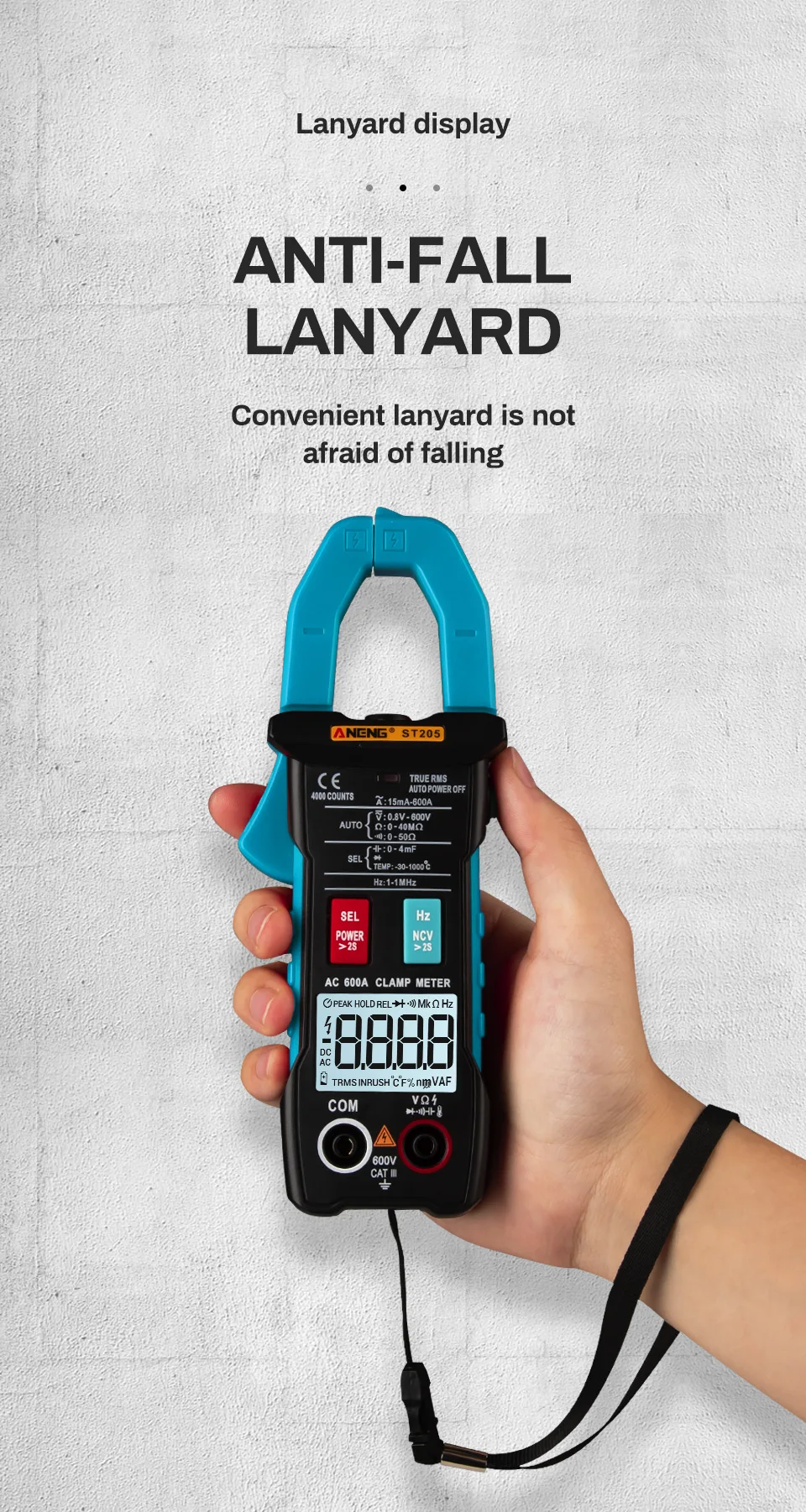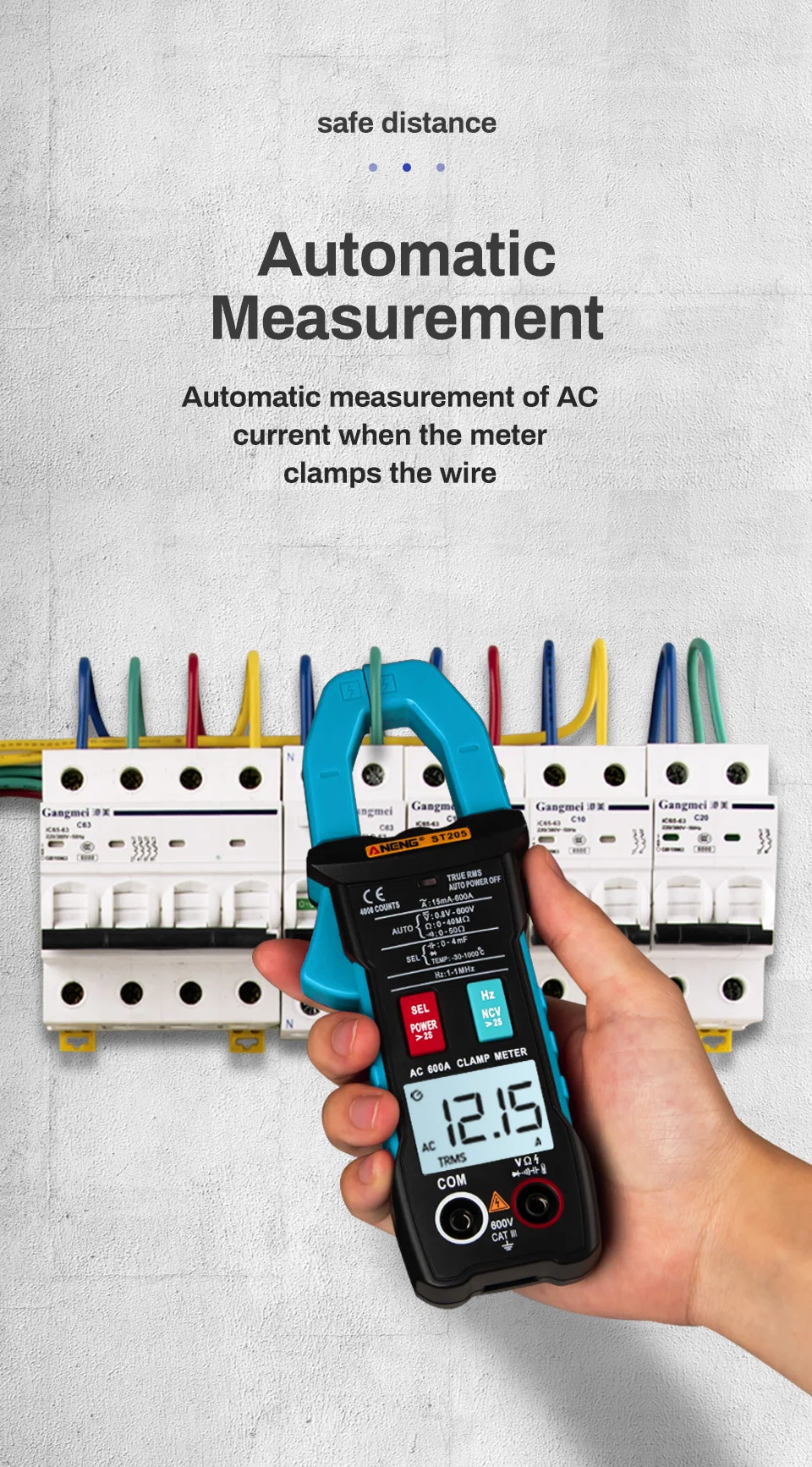 Цифровые клещи ANENG ST205, аналоговый мультиметр, Токоизмерительные клещи постоянногопеременного тока, интеллектуальный автоматический измеритель диапазона с тестером температуры