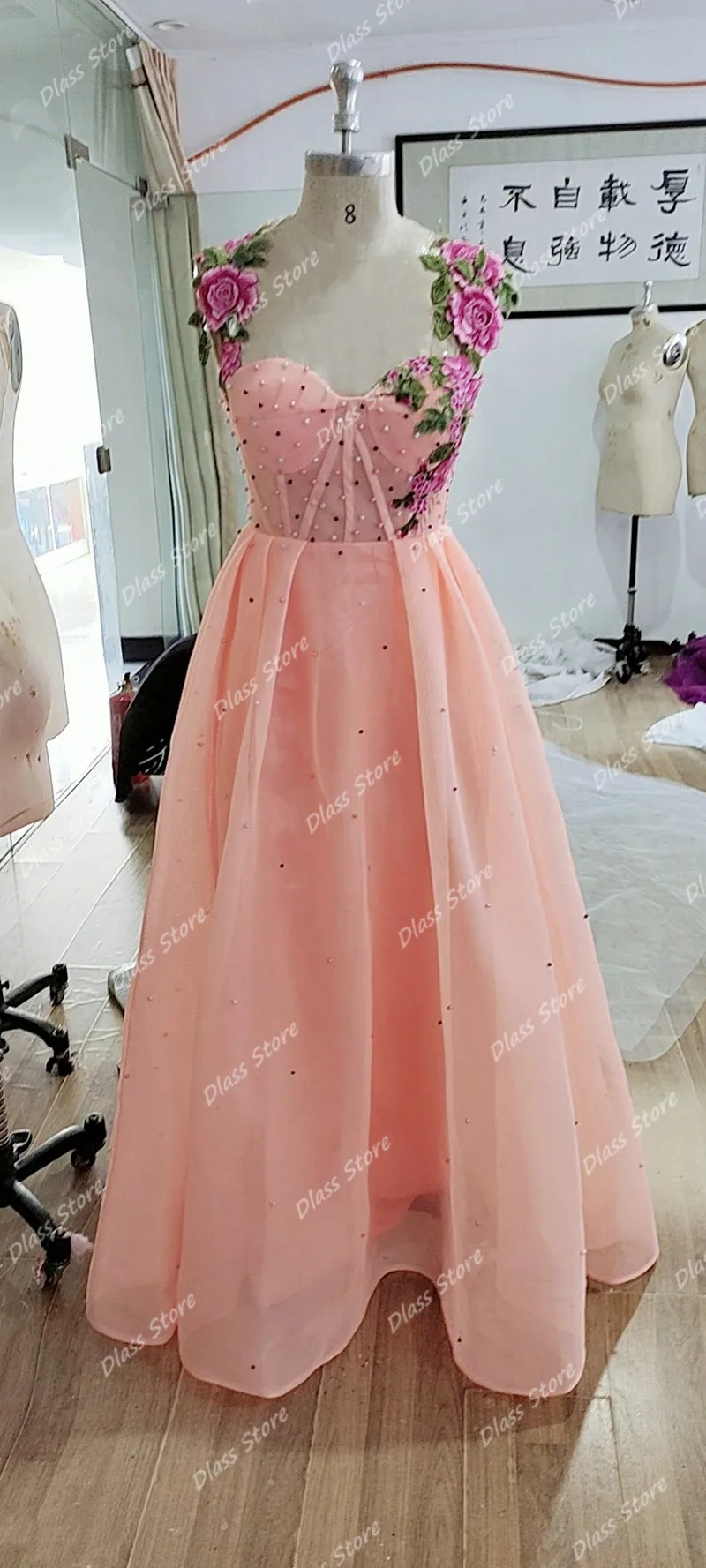 Длинное платье для девочек, на бретельках, с цветочной вышивкой, розового цвета, для особых случаев, Разноцветный жемчуг