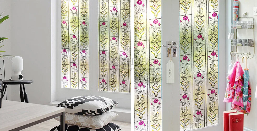 Защитная пленка для окон разных размеров, Антистатическая тонировка для витражное окно стекла, защита от УФ-лучей, виниловые стеклянные чехлы с термоконтролем (роза)