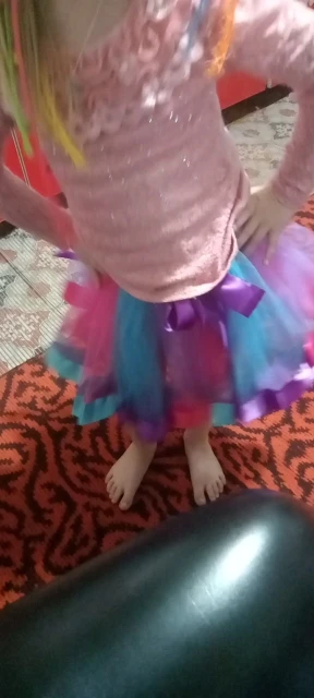 Дочка носит размер 116, футболка только-только, у юбки небольшой запас есть. Юбка не цельная, соединена только под резинкой. Прошито в одну нитку, сколько протянет - неизвестно.