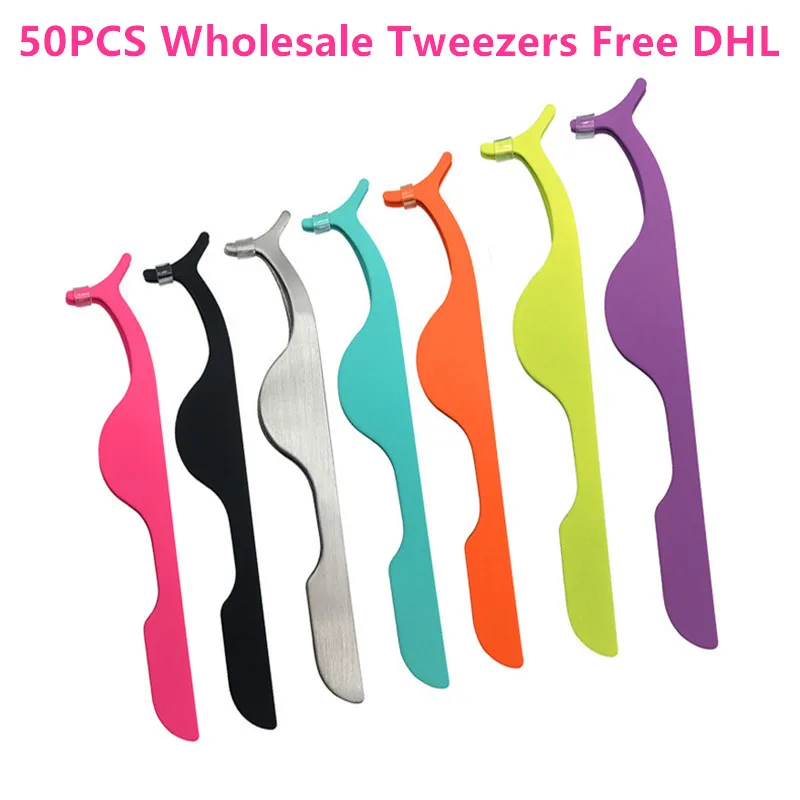 50 шт. оптовая продажа накладных ресниц, пинцет, аппликатор для ресниц, щипцы для завивки и наращивания ресниц, Вспомогательный зажим, инструмент для макияжа