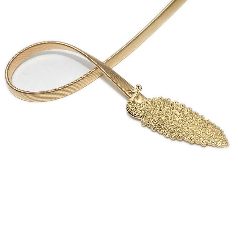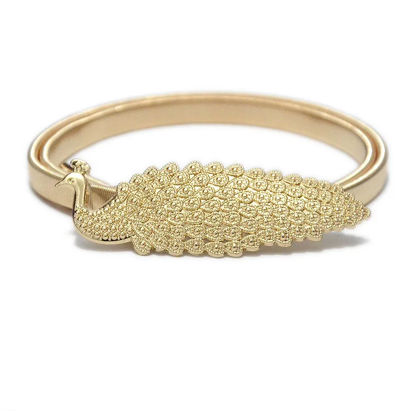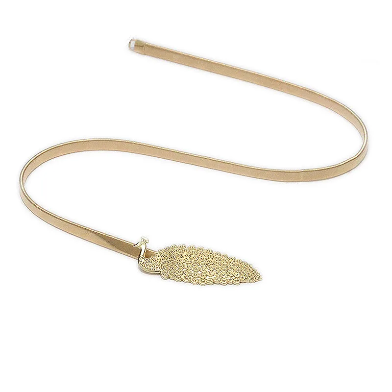 Ремень металлический женский, роскошный брендовый узкий эластичный пояс с золотым павлином для платьев