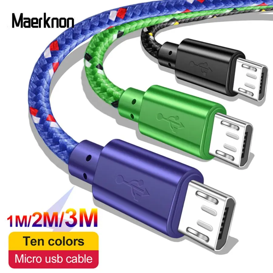 Micro USB кабель 1 м 2 м 3 м Быстрая зарядка нейлон MicroUSB мобиль...