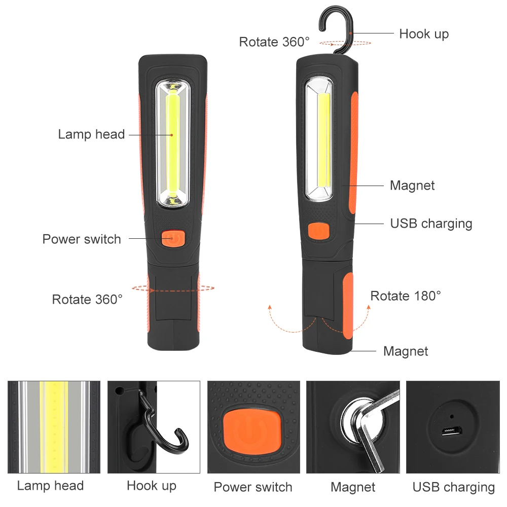 С сильным магнитом на задней и нижней части, рабочий светильник может быть прикреплен к металлическому предмету, например, металлической коробке, машине.