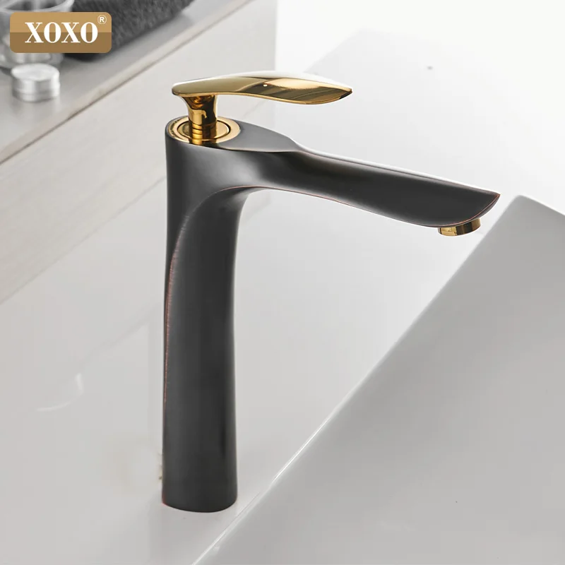 Смесители для раковины XOXO 20055-1, кран с одним отверстием для холодной и горячей воды, черный белый золотистый цвет, для ванной комнаты