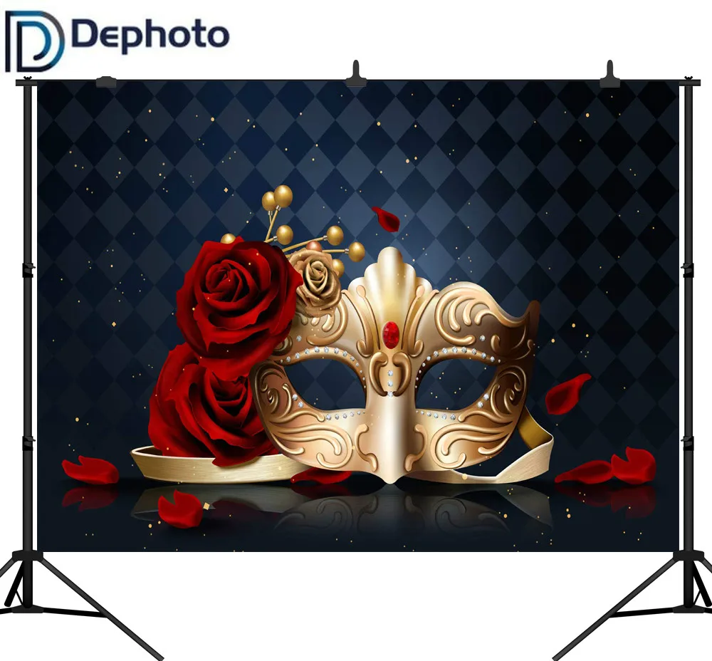 DePhoto фон для фотосъемки стильные карнавальные вечерние красные розовые золотые маски с бриллиантами фон для фотосъемки на заказ