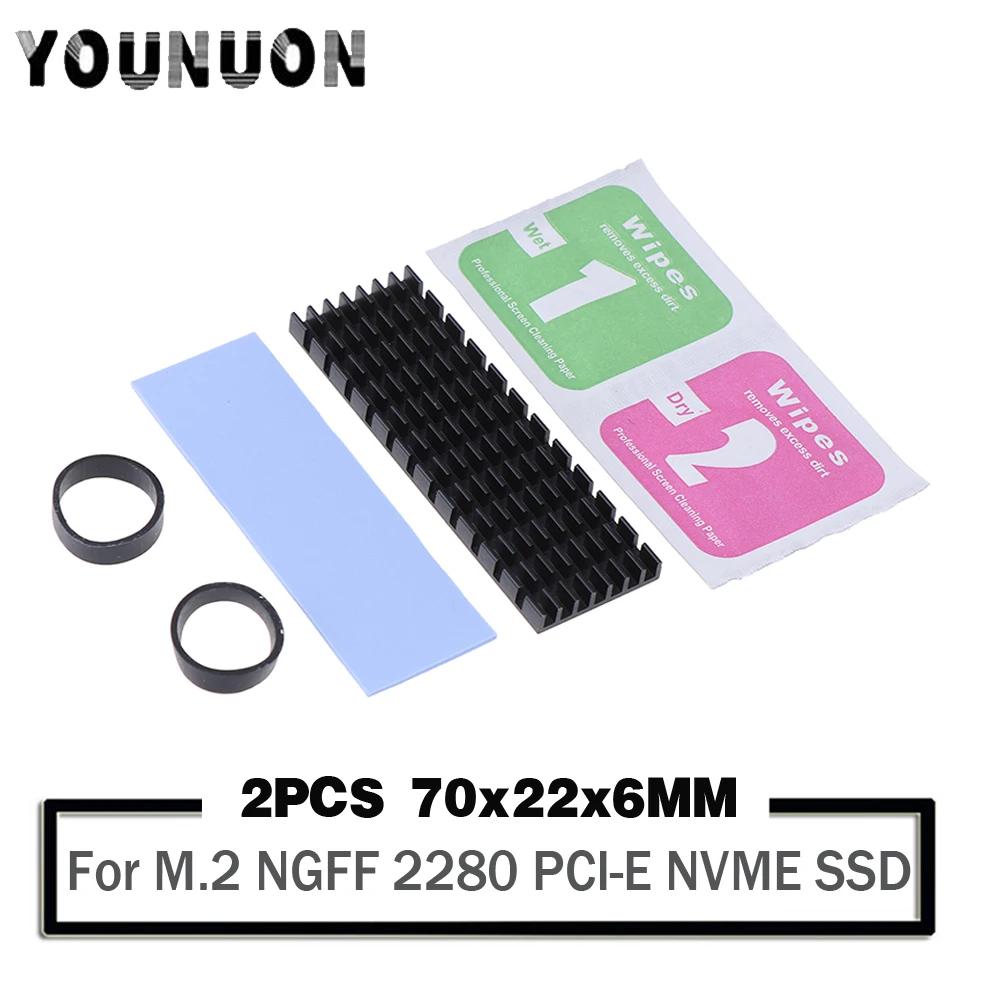 2 шт. YOUNUON алюминиевые радиаторы для PCIe NVMe M.2 2280 SSD с си...