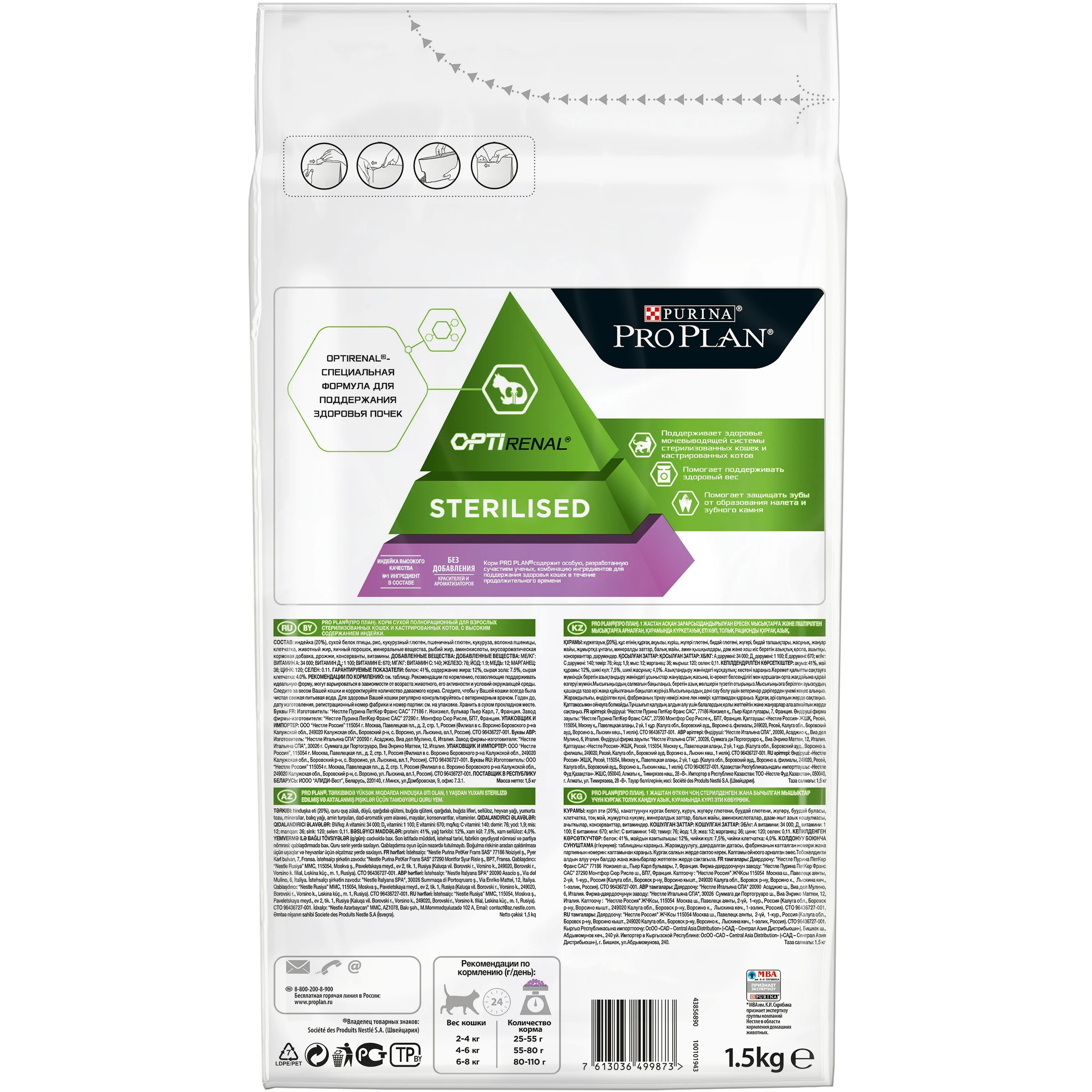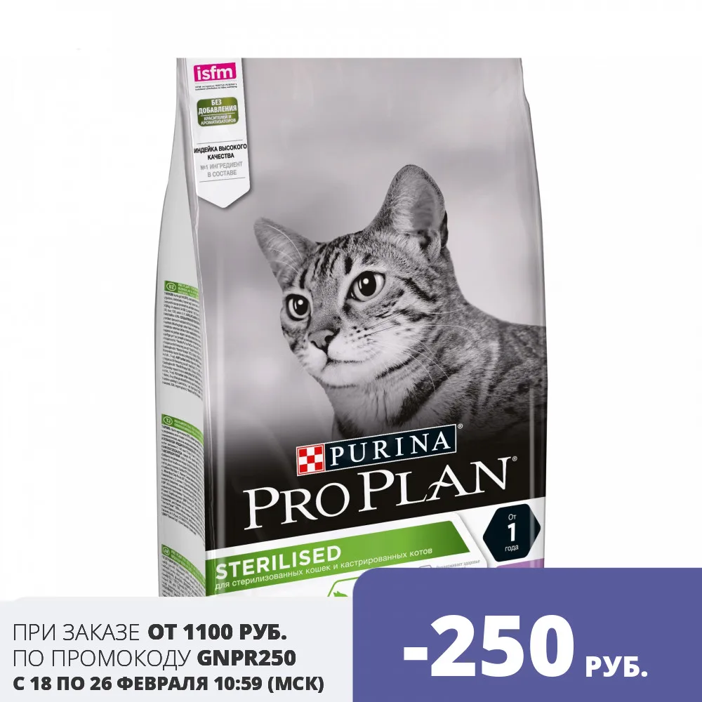 Сухой корм Purina Pro Plan для стерилизованных кошек и кастрированных котов для поддержания здоровья почек, с индейкой, Пакет, 1.5 кг