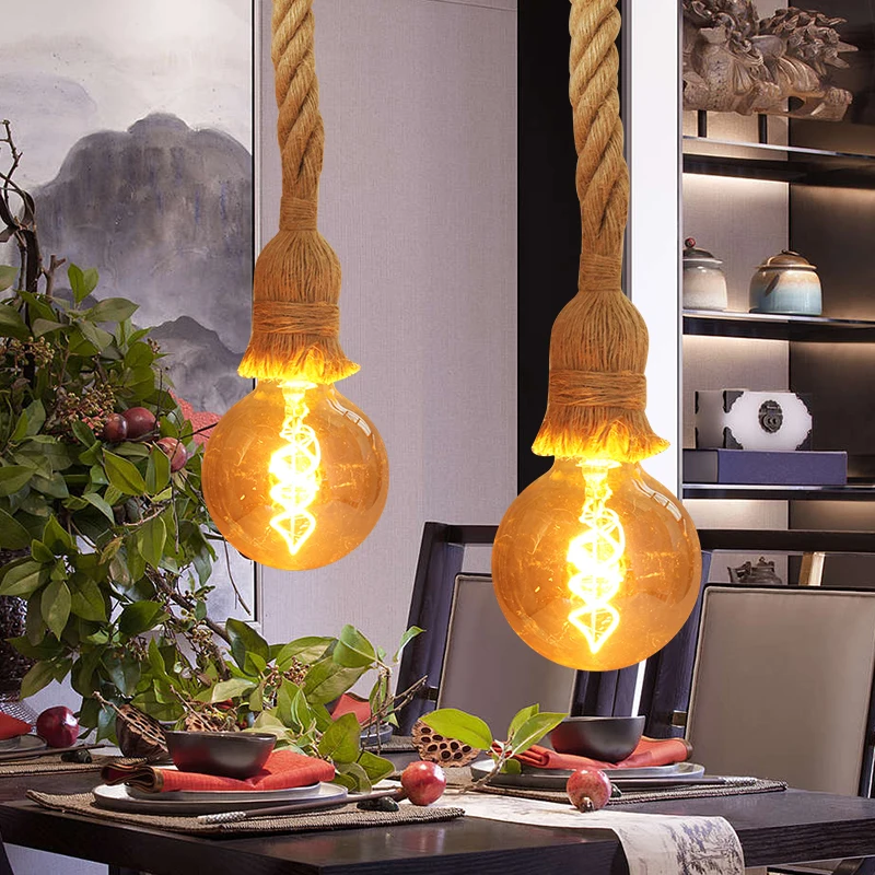 Винтажный подвесной светильник из пеньковой веревки E27 1 М 1,5 м 2 м 2,5 м 3 м AC85-265V Лофт индивидуальный промышленный подвесной светильник Эдисон подвесной светильник
