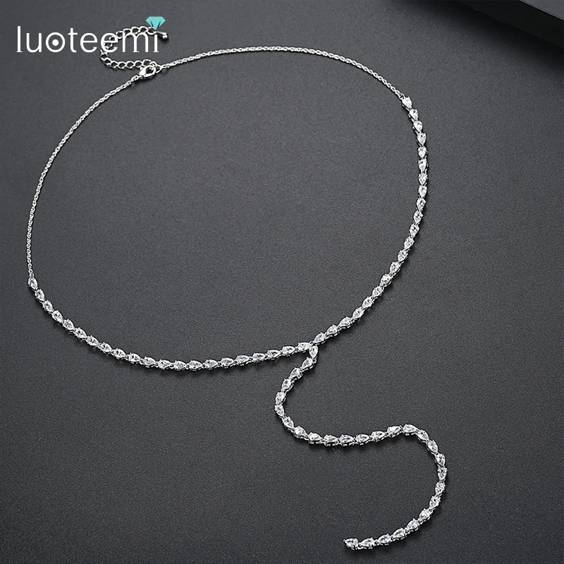 LUOTEEMI длинная Роскошная цепочка с кулоном из фианита ожерелье для женщин Модная бижутерия цепочка для свитера женские ожерелья с кисточками бижутерия для женщин