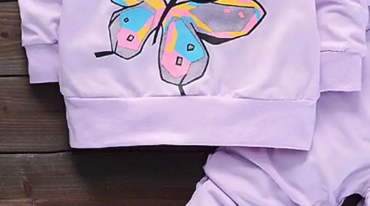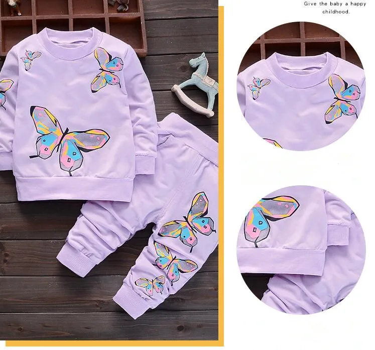 Одежда для маленьких девочек 0-4 лет, весенний и осенний хлопковый костюм с длинным рукавом, милый костюм для девочек с принтом бабочки, комплект из 2 предметов для девочек